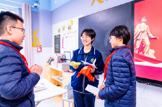 课程结束后,许多小同学将自己间餐的小点心,悄悄塞给了大哥哥大姐姐。那一刻,笑容在每个人脸上绽放,友情在彼此心间流淌,这是雷锋精神最生动、最甜美的“课堂回声”。