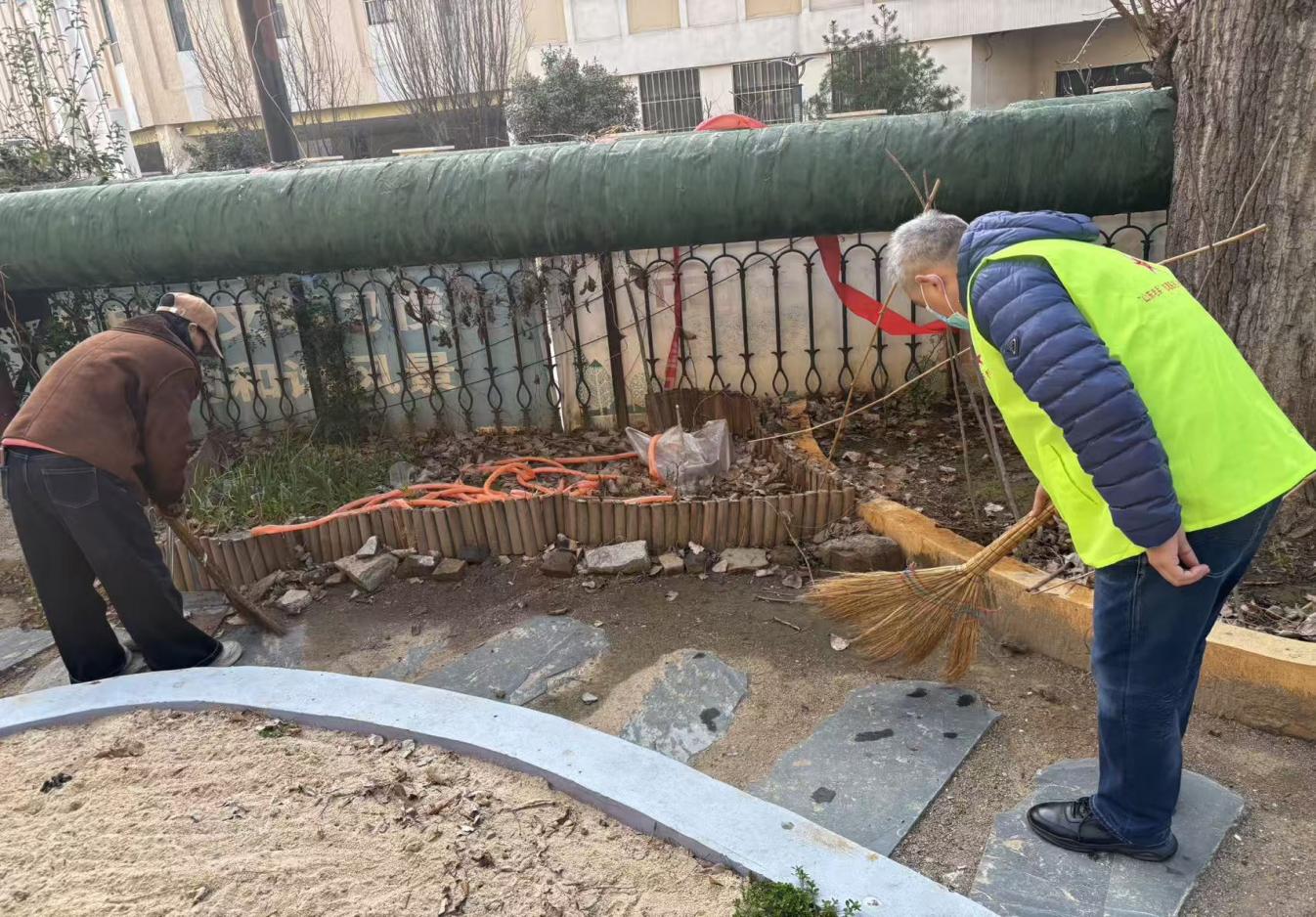 活动中,志愿者们发扬奉献精神,手持工具认真铲除杂草、清理枯枝落叶,对卫生死角进行彻底清扫。大家分工协作、干劲十足,不放过一处杂草、不留下一点垃圾。物业人员同步对绿化带进行整理。经过共同努力,苗圃环境变得整洁有序、面貌焕然一新。