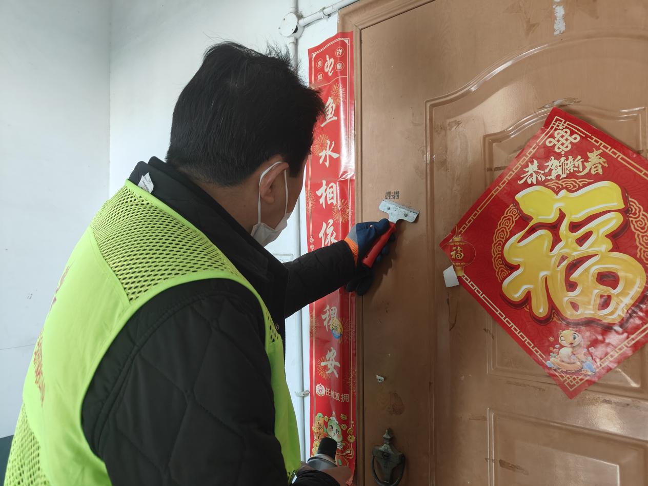 活动现场,退役军人志愿者们身着志愿马甲,手持铲刀、除胶剂、抹布等工具,分组深入各楼栋,对墙面、楼梯扶手、电表箱上的小广告开展“地毯式”清理。面对层层粘贴、胶印顽固的小广告,大家耐心细致,先用药剂浸湿软化,再用铲刀轻轻铲除,最后用抹布擦拭干净,不放过任何一处卫生死角。志愿者们发扬军人不怕苦、不怕累、不怕脏的优良作风,分工协作、默契配合,忙碌的身影成为社区里最靓丽的风景线。与此同时,网格员向过往居民宣传文明创建知识,呼吁大家共同抵制乱贴乱画行为,从源头减少“牛皮癣”滋生,共同守护整洁家园。