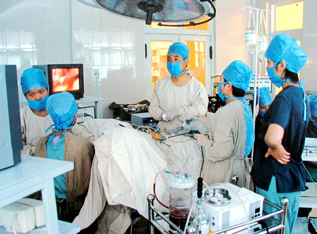 2011年,在太原机场,我与桓台县妇幼保健院周克水教授偶然相遇,得知该院在腹腔镜下子宫切除方面又有新的进展,我十分感兴趣。业内人士普遍知道,既往的腹腔镜全子宫切除手术对子宫血管的处理难度较大,如果遇到出血、粘连、解剖层次不清等情况时,还可能因钳夹、电凝止血、分离组织而伤及输尿管;当子宫超过妊娠3个月大小时,由于盆腔空间相对小,常常因无法完成微创手术而中转开腹。针对这一问题,桓台县妇幼保健院创造性地采用了缝扎子宫血管、阴道残端悬吊的新式子宫切除术。