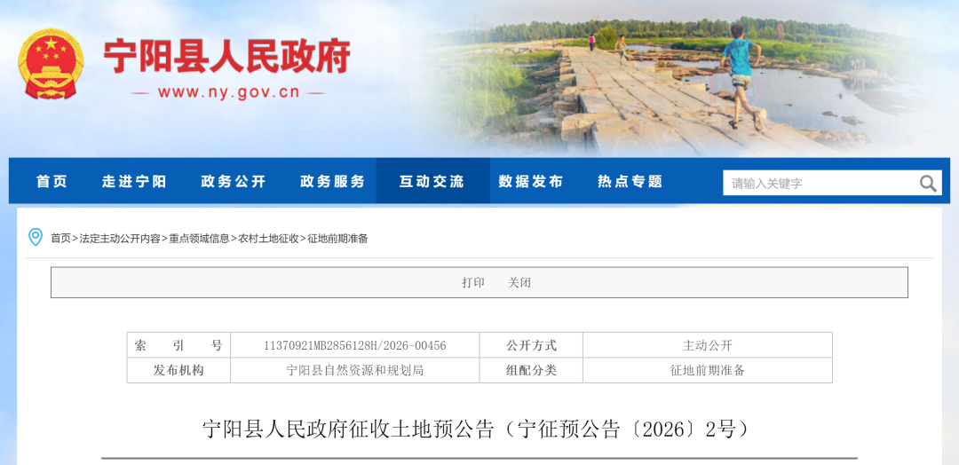 近日,宁阳县人民政府网站发布两则宁阳县人民政府征收土地预公告,具体如下: