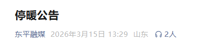 3月18日24:00停暖,泰安东平发布公告