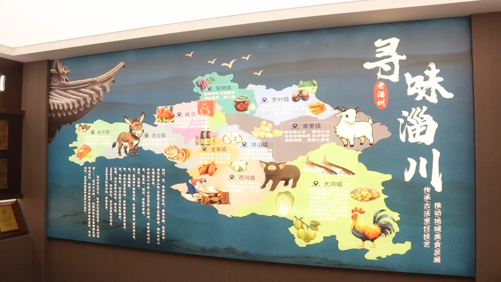 淄博市淄川区古称“般阳”,当地美食般阳宴是区级非物质文化遗产代表性项目。走进一家般阳宴特色餐厅,民俗图案装点墙面,《聊斋志异》《淄川县志》等陈列于走廊。餐厅从食材甄选、烹饪手法,到场景布置、服务细节,全方位还原淄川传统宴席,让文化融入用餐的每个环节。