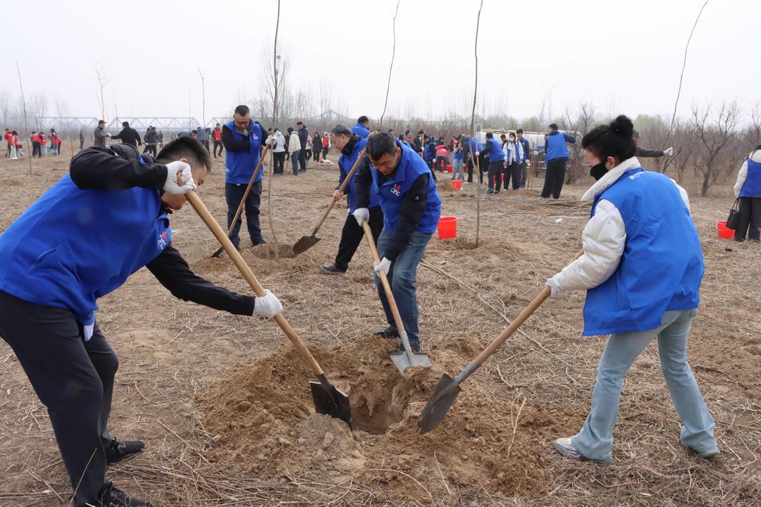 黄河之水天上来,奔流到海不复回。作为黄河流域唯一河海交汇区的山东,正肩负着下游生态保护主战场的重任。植树造林,不仅是守护黄河安澜的硬核举措,更是践行“双碳”目标、写好绿色金融大文章的生动实践。活动现场,志愿者们分工协作,扶苗、培土、浇灌,每一个步骤都细致入微。春风拂过,一株株新栽的树苗迎风挺立,不仅为黄河沿岸的生态屏障增添了新的生机,也象征着绿色希望在齐鲁大地深深扎根。