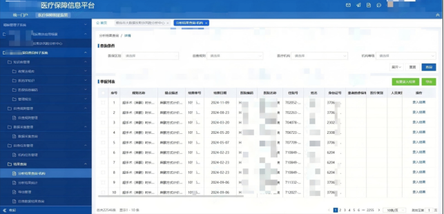 二是智慧大脑智能判。依托自主研发的医保反欺诈智能预警模型体系,对全市医保结算数据实施全量、实时、动态扫描。2025年全年累计分析医保结算数据1.44亿条,精准识别并推送高风险疑点线索14万条,覆盖“体检式住院”“高频异常就诊”“药品超量开具”等典型违规场景。通过模型前置预警,大幅压缩人工筛查范围,显著提升稽核靶向性和响应效率,为基金监管从事后查处向事前预防、事中拦截转型提供了有力支撑。