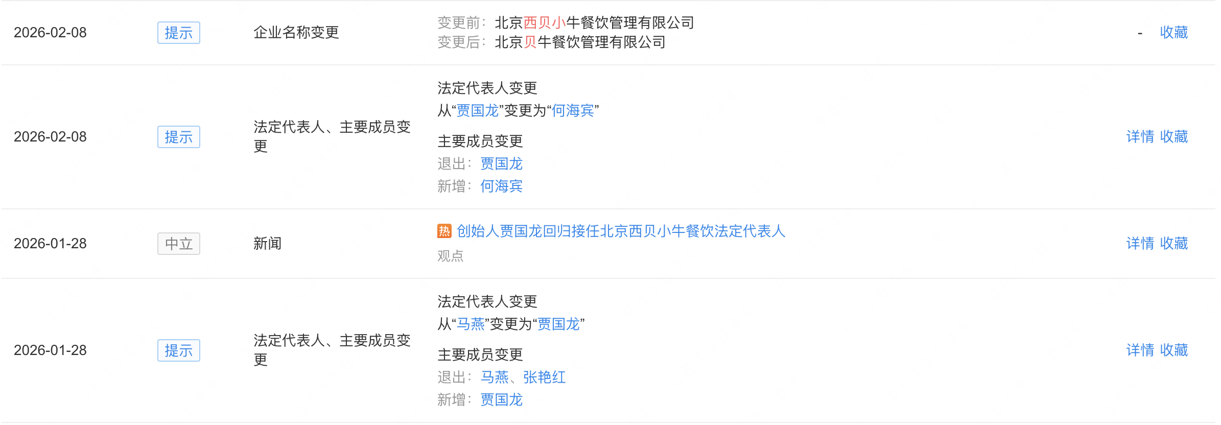 面对重重困境,西贝的管理层也在发生调整。就在一个月内,西贝出现了两次高层变动。2月8日,北京西贝小牛餐饮管理有限公司发生工商变更,企业名称变更为北京贝牛餐饮管理有限公司。西贝创始人贾国龙卸任法定代表人、经理、董事,由何海宾接任。值得关注的是,今年1月28日,该公司刚刚发生工商变更,贾国龙担任法定代表人、经理、董事,任期不足两周。