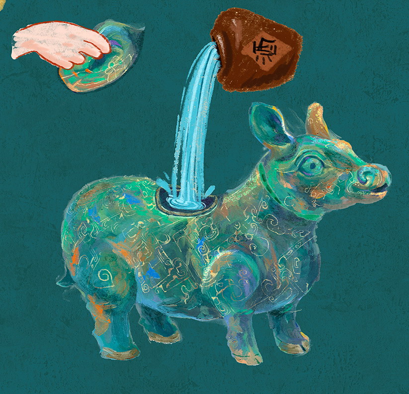 错金银镶嵌铜牺尊(手绘)