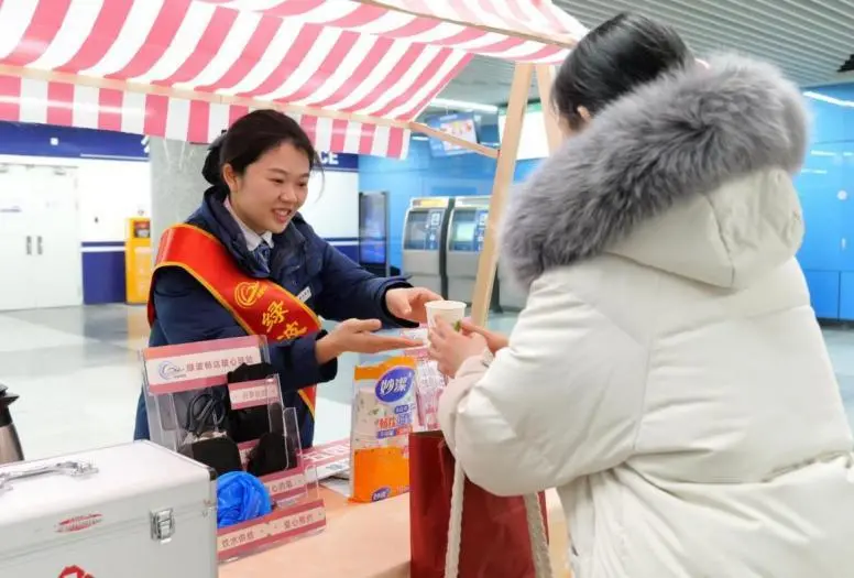 22项便民举措、8万人次—车站内设休息座椅,提供热水、爱心预约、行李打包、潮汐信息查询等22项便民举措。其中,300余次爱心预约,为特殊需求乘客提前规划路线、安排专人协助;1万余次行李打包护送,解决乘客出行困扰。春运期间,青岛地铁以贴心服务回应每一份期待,用全方位的便民举措累计服务乘客8万人次,让用心被看见,让温暖被感知。