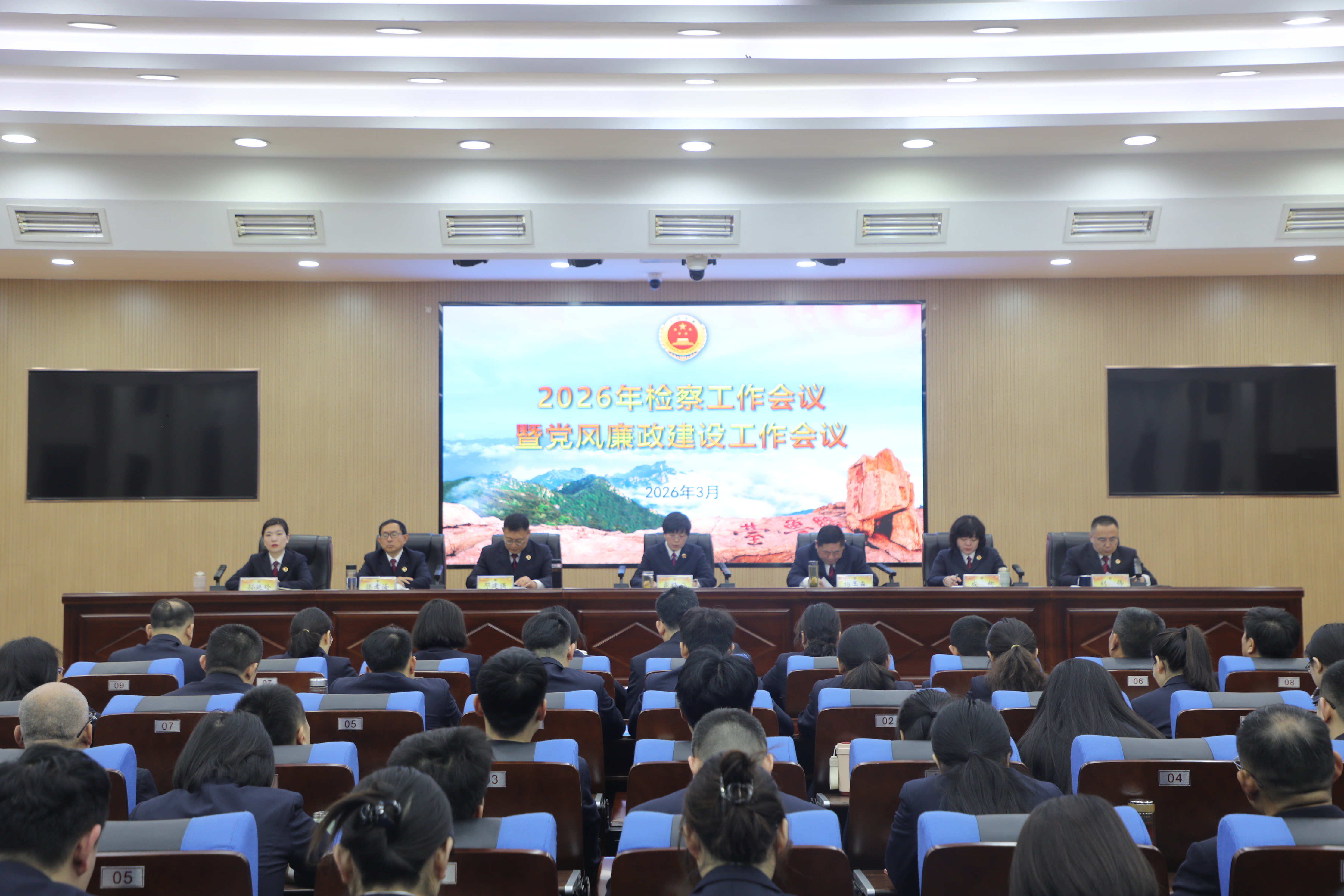 3月16日,泰安市岱岳区人民检察院召开2026年检察工作会议暨党风廉政建设工作会议。会议以习近平新时代中国特色社会主义思想为指导,深入学习贯彻习近平法治思想和习近平总书记对政法工作的重要指示精神,全面贯彻落实党的二十大和二十届历次全会精神,按照各级政法工作会议和各级检察长会议部署,总结2025年工作,部署2026年任务,并对党风廉政建设进行工作部署。院党组书记、检察长戴晓宁出席会议并讲话,党组副书记、副检察长杨玉森主持会议,全体干警参加会议。