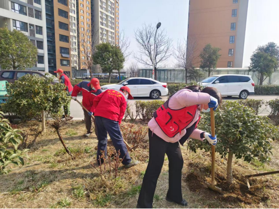 在石灰官庄社区,“植绿护绿齐参与,美好家园共守护”主题活动现场同样热火朝天,社区党员志愿者、居民代表与物业人员共同参与,将学习与实践相结合。活动现场,专业绿化师傅首先开展现场教学,围绕春季树木修剪、松土除草、浇水施肥等养护知识进行细致讲解,用通俗语言拆解“一看二摸三判断”养护法,手把手示范修剪角度、覆土压实等关键环节。理论学习后,大家分组进入社区绿地,对桂花树、花灌木及绿化带进行集中养护,有的手持修枝剪修剪徒长枝,有的挥动锄头松土除草,有的为绿植浇灌定根水,一派热火朝天的劳动景象。植树结束后,大家纷纷表示:“这次活动不仅学到了专业的绿化养护知识,更体会到了护绿的不易,看着自己亲手修剪养护的苗木迎风而立,特别有成就感,能为社区绿化出一份力,感觉很荣幸。”活动现场还发出“共建绿色家园”倡议,倡导居民从身边做起、从点滴做起,多养一片草、多护一片绿,积极参与到社区绿化管护中来,用实际行动凝聚起植绿护绿爱绿的全民力量。