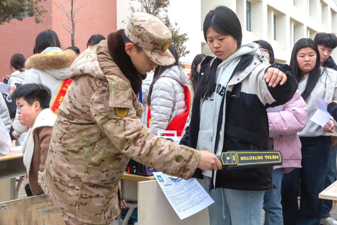 考试当天6时30分,考务工作人员、道路引导人员、安检人员已全部到岗到位,有条不紊完成各项考前准备工作,静待考生赴考。考场开放后,考生依次经过安检、身份核验、信息核对等规范流程,有序进入对应考场,整个入场过程高效顺畅。