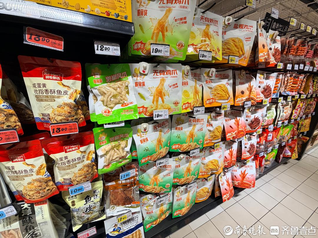 3月16日,在济南历下区一家大型连锁超市的休闲食品区,记者看到货架上摆放着不少品牌的袋装及散装鸡爪产品,并未发现有涉事品牌。随后,记者又走访了山师东路、文化西路的赵一鸣、好想来等多家零食集合店,同样未见涉事鸡爪在售。