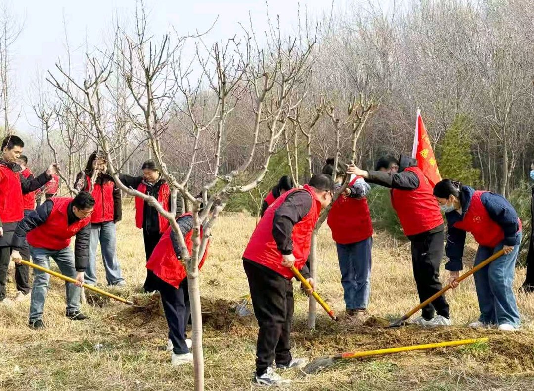 3月12日,在王坟镇西乖场村植树现场,一派热火朝天、干劲十足的劳动景象。机关干部们挥锹挖坑、扶苗培土、围堰夯实、提水浇灌,每一道工序都细致认真、有条不紊。