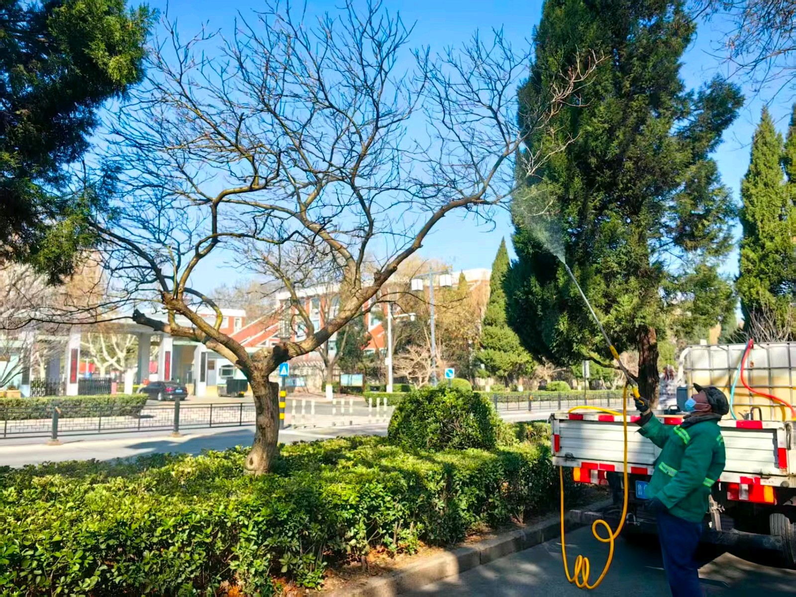 “物理防治方面,主要是缠绕防虫胶带,并在公园绿地中悬挂粘虫板、诱捕器,精准诱杀蚜虫、粉虱等小型害虫;化学防治方面,针对不同病虫害特性,科学选用低毒、高效、无公害药剂,既避免药剂飘散对环境造成影响,又能精准作用于靶标。”青州市园林绿化和环卫中心养护科工作人员郑永萍说。