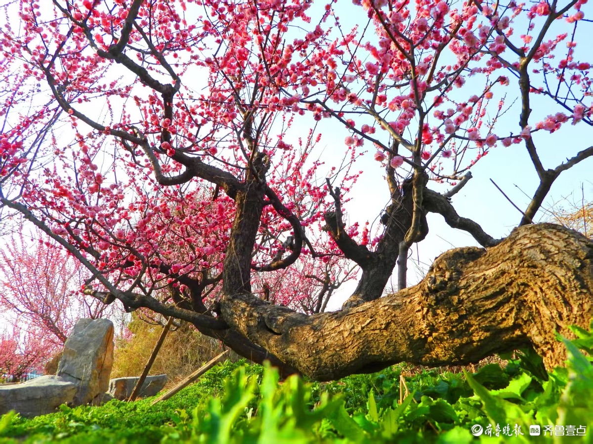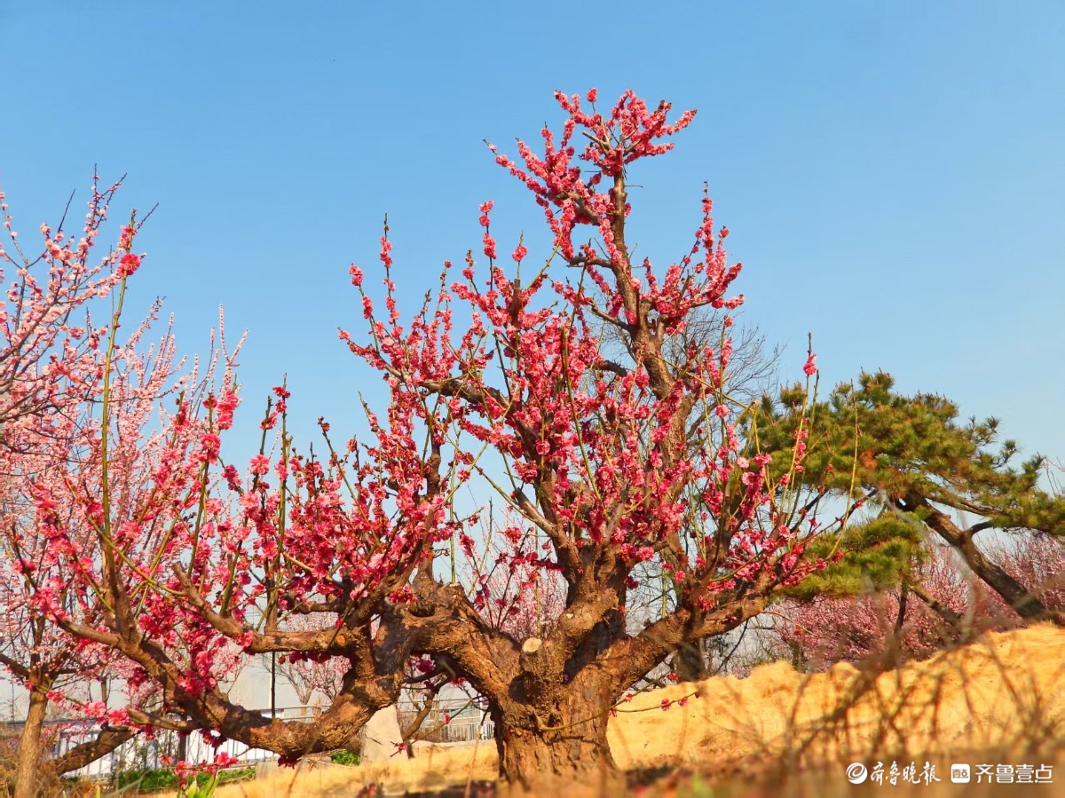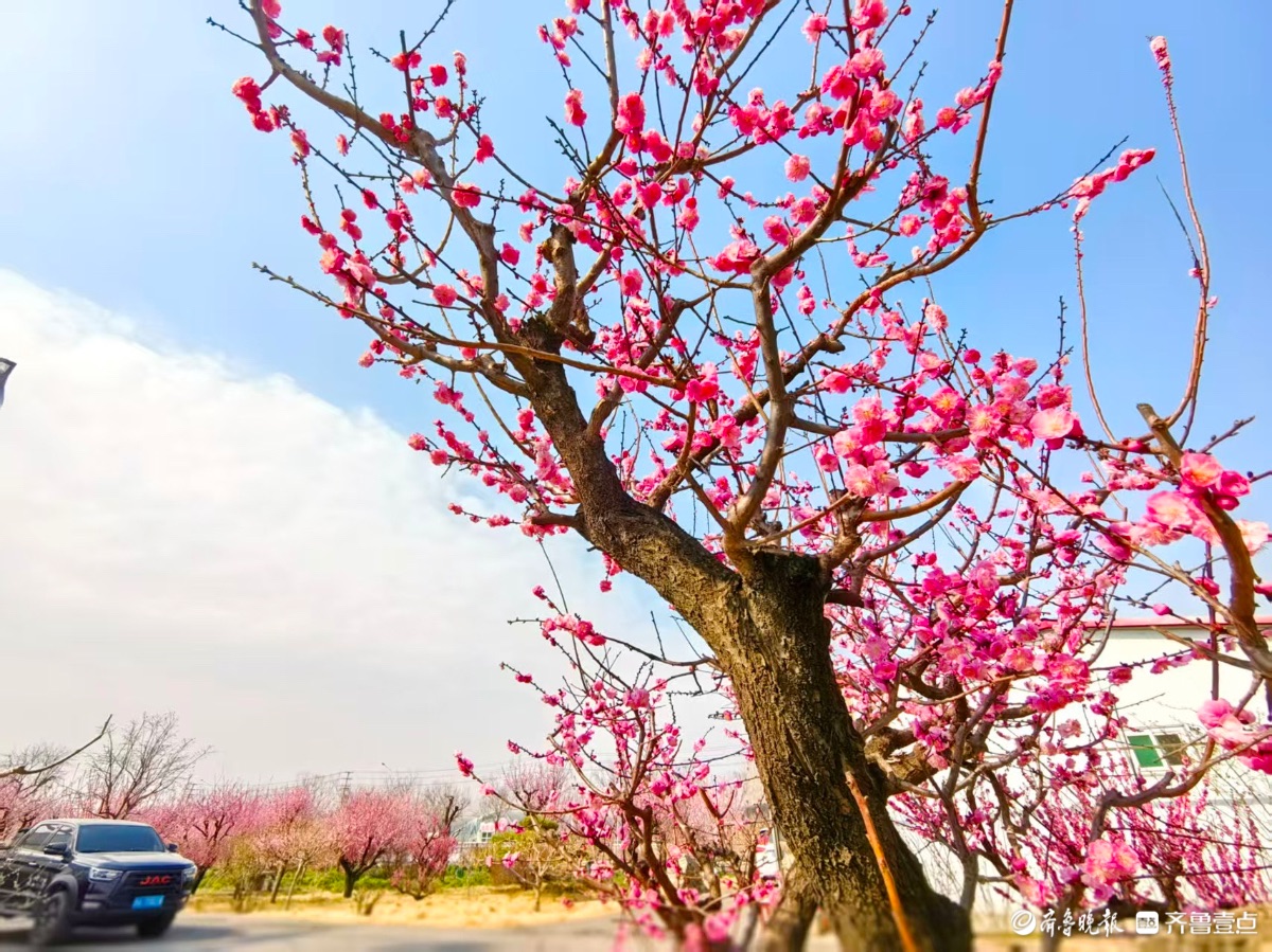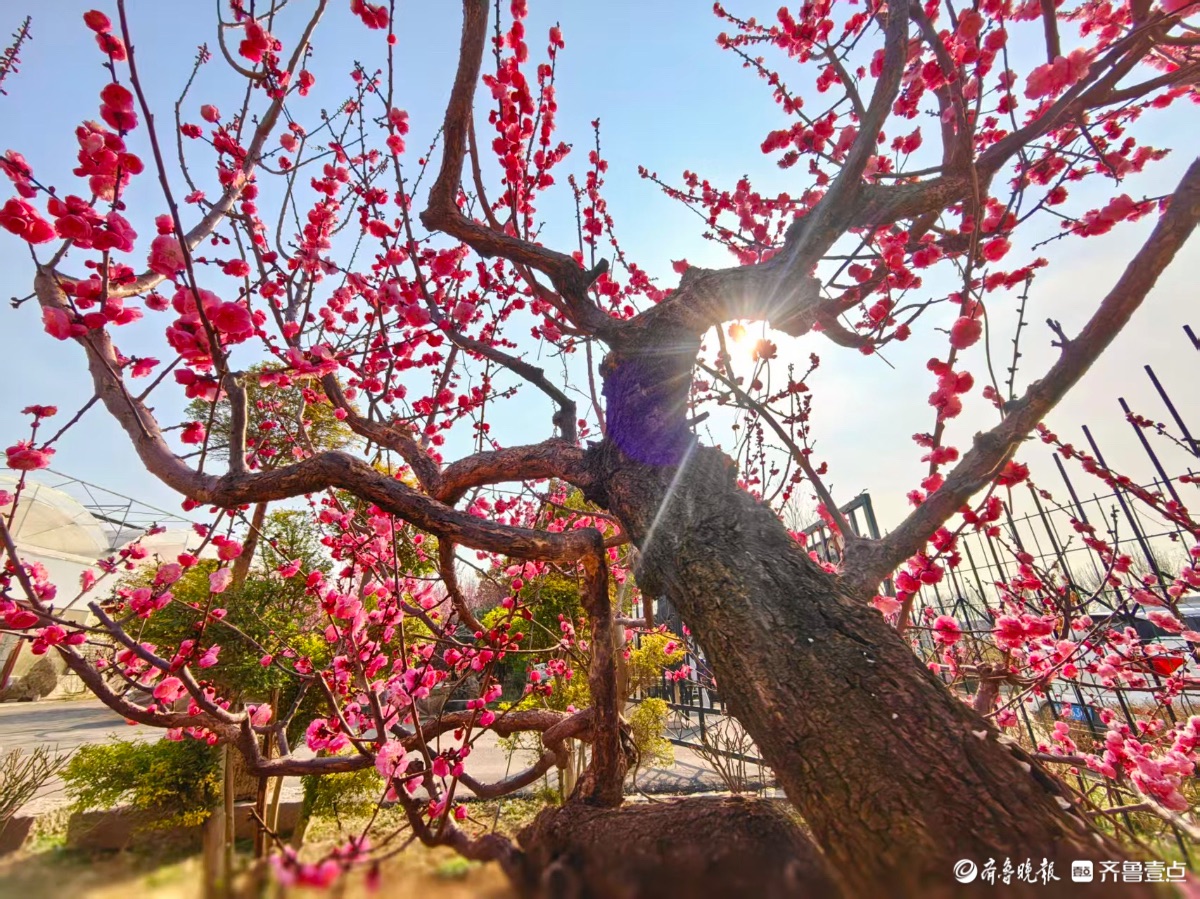蓝天下,章丘梅园梅花开