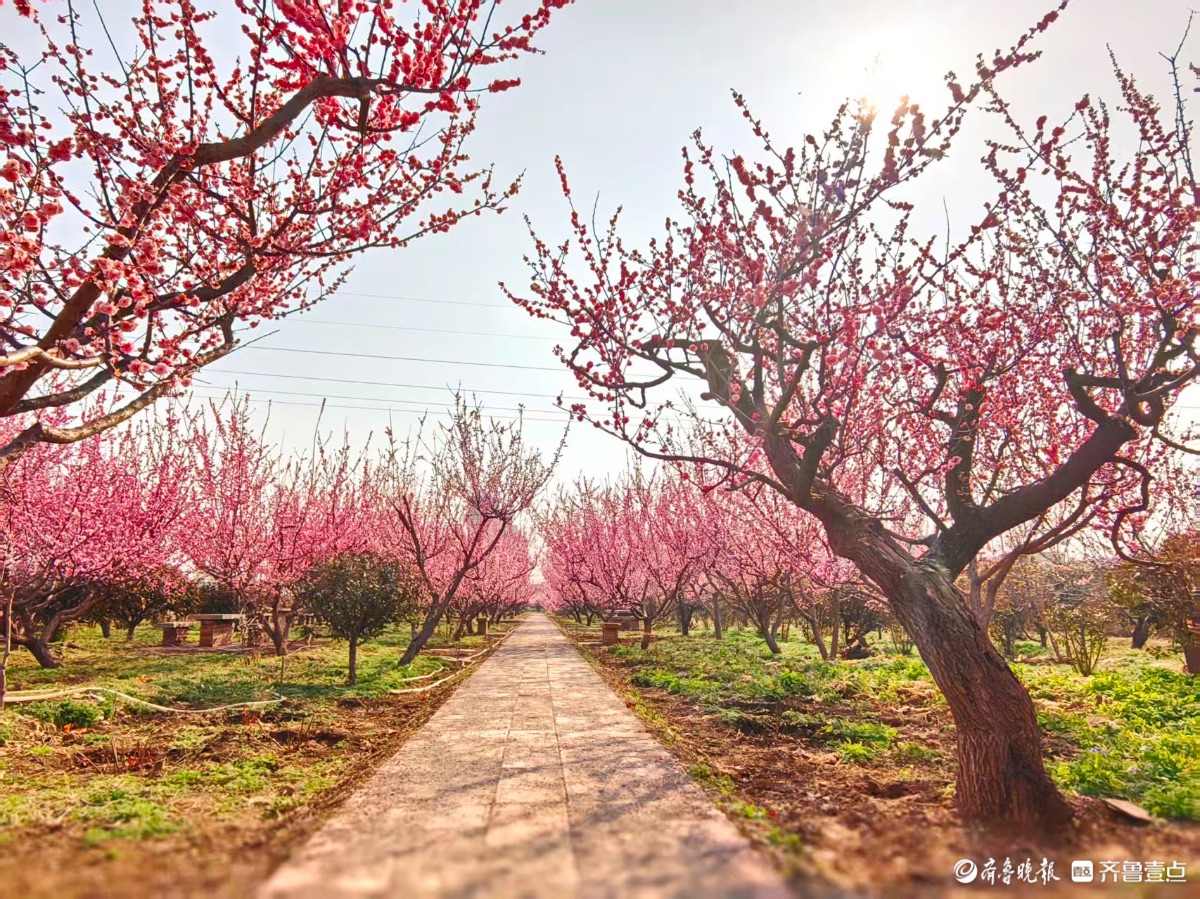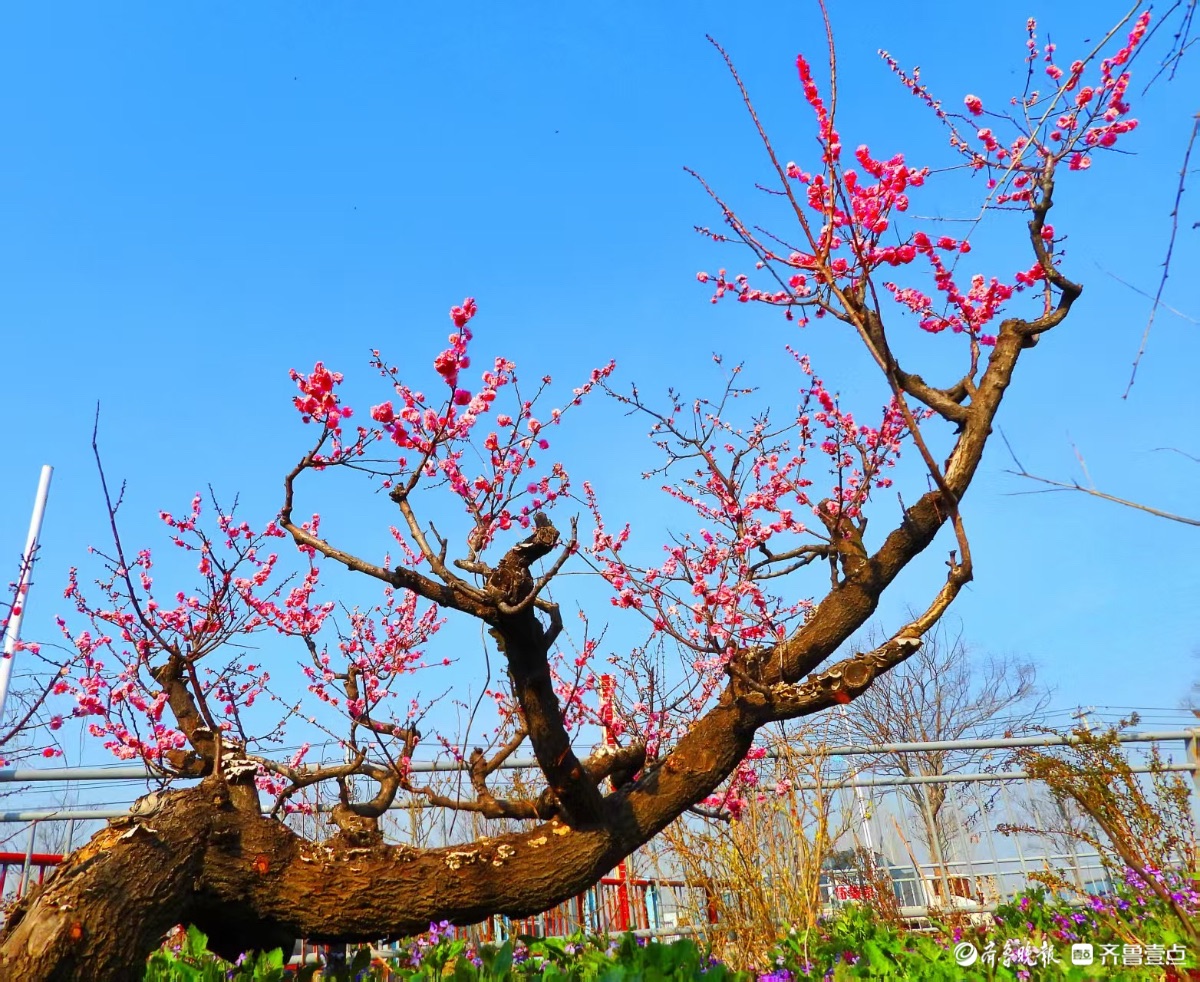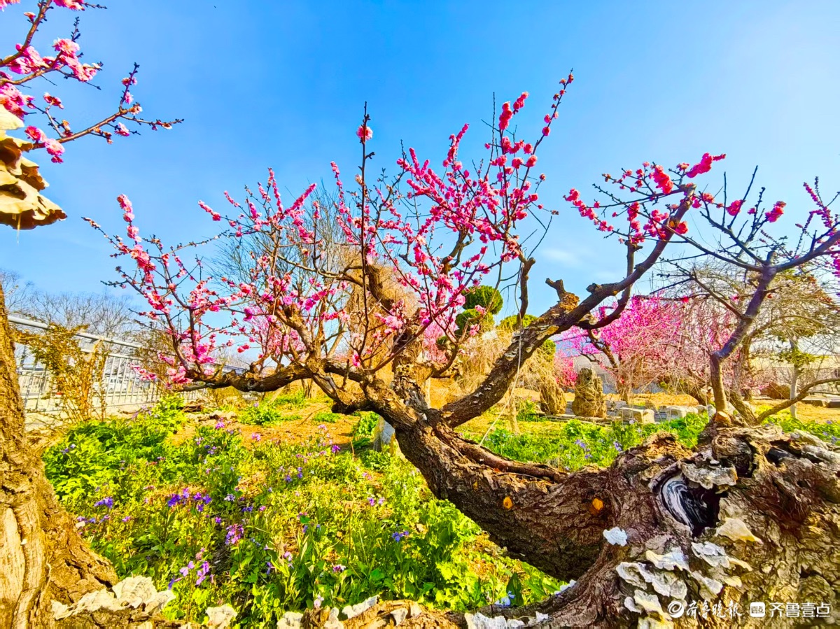 蓝天下,章丘梅园梅花开