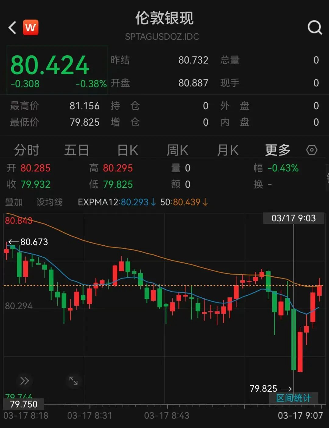 现货白银刚刚跌破80美元关口