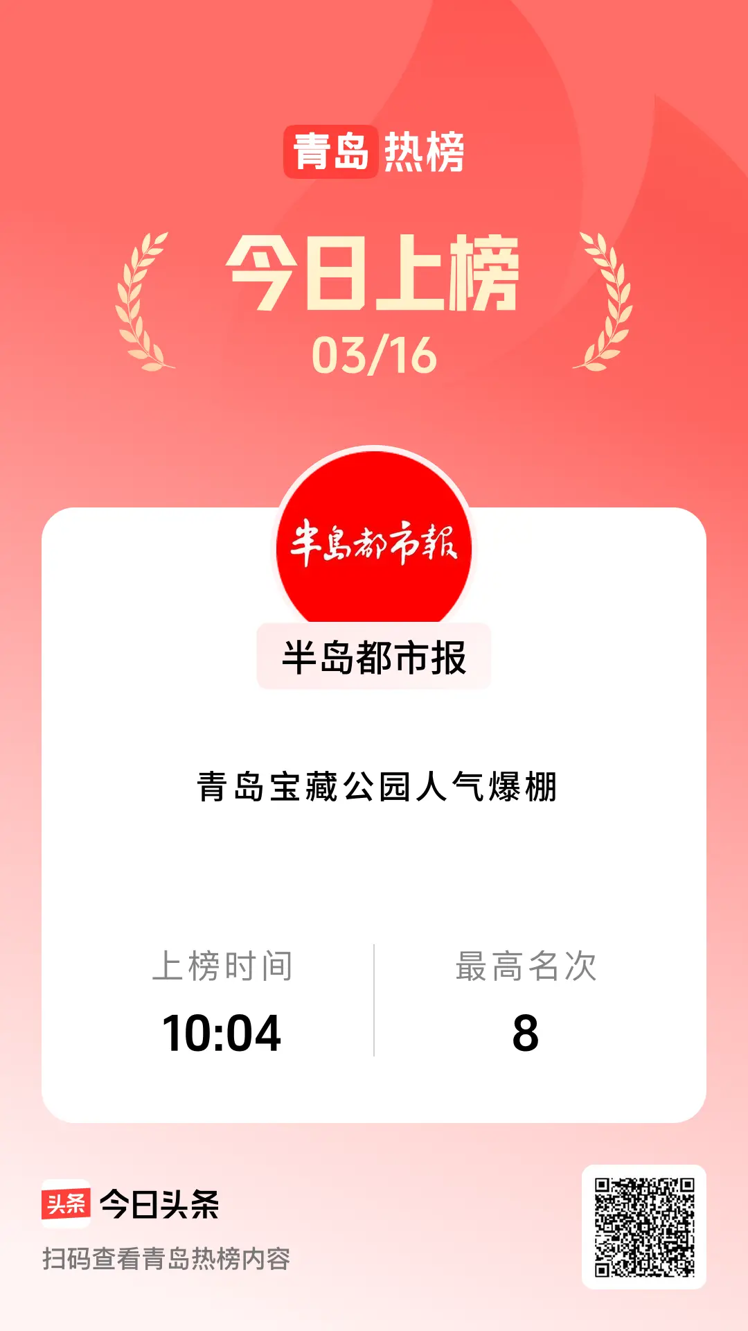 登上青岛热榜,最高位次为第名