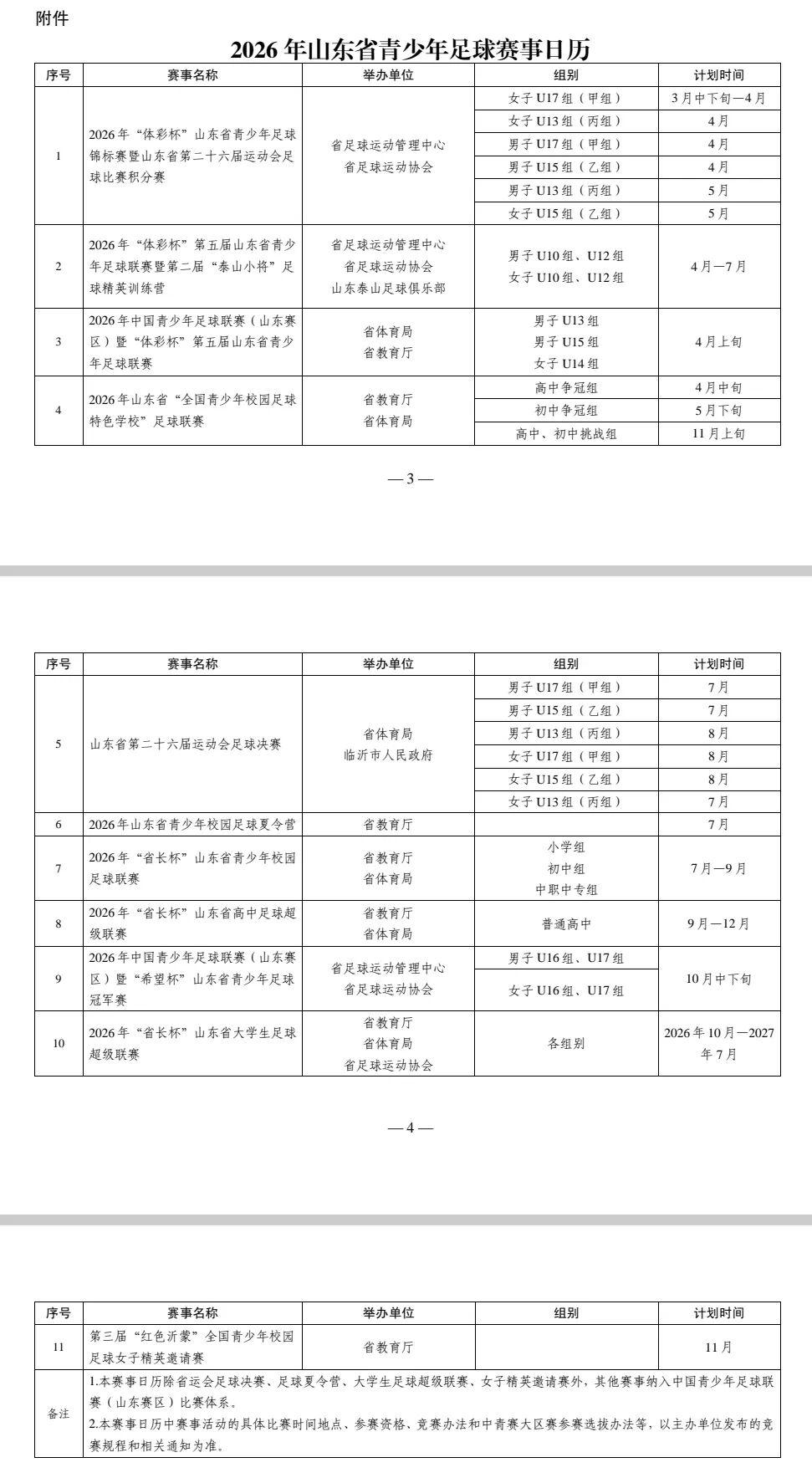 附件:2026年度山东省青少年(学生)足球赛事日历
