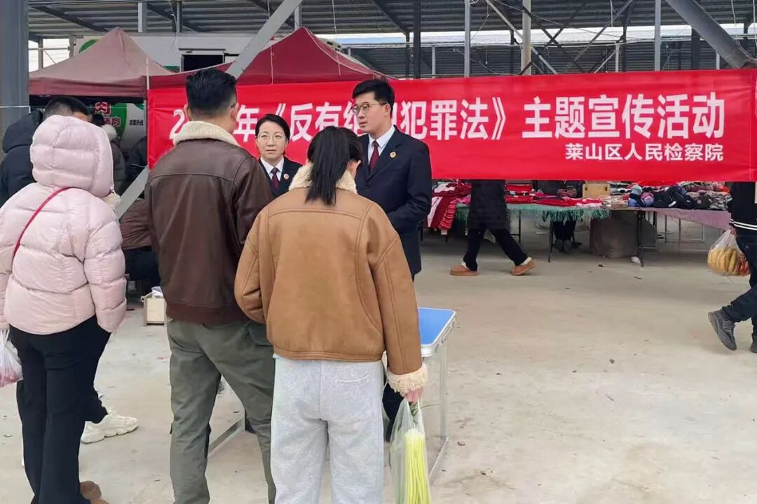 为扎实推进扫黑除恶斗争常态化,进一步筑牢乡村法治防线,3月14日,烟台市莱山区人民检察院组织干警走进解甲庄镇东解甲庄樱桃市场,开展反有组织犯罪法专题普法宣传活动。