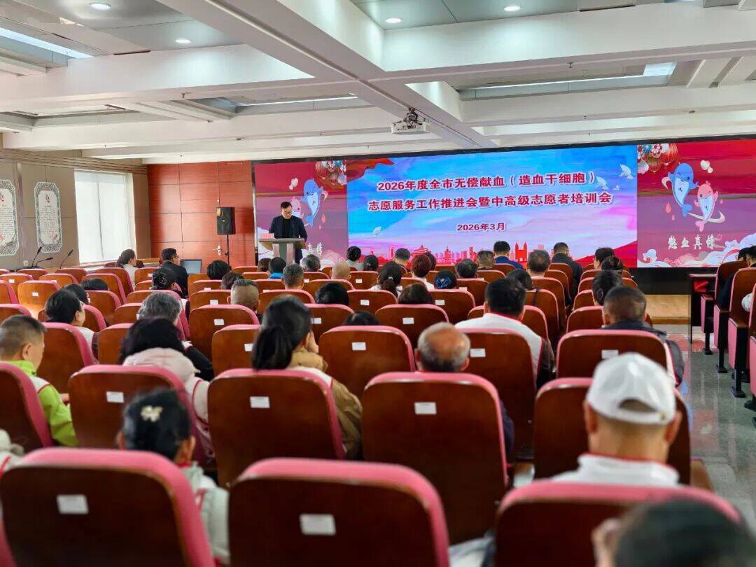 3月12日,2026年度全市无偿献血(造血干细胞)志愿服务工作推进会暨中高级志愿者培训会在青岛市中心血站举行,青岛市红十字会、青岛市中心血站相关领导,各献血服务部负责人及全市各志愿服务中队队长、骨干齐聚一堂,总结过往成果,部署全新计划,为青岛无偿献血志愿服务事业再启新篇。