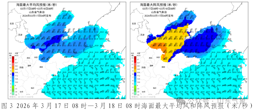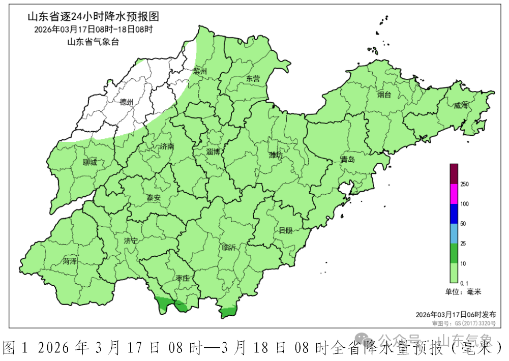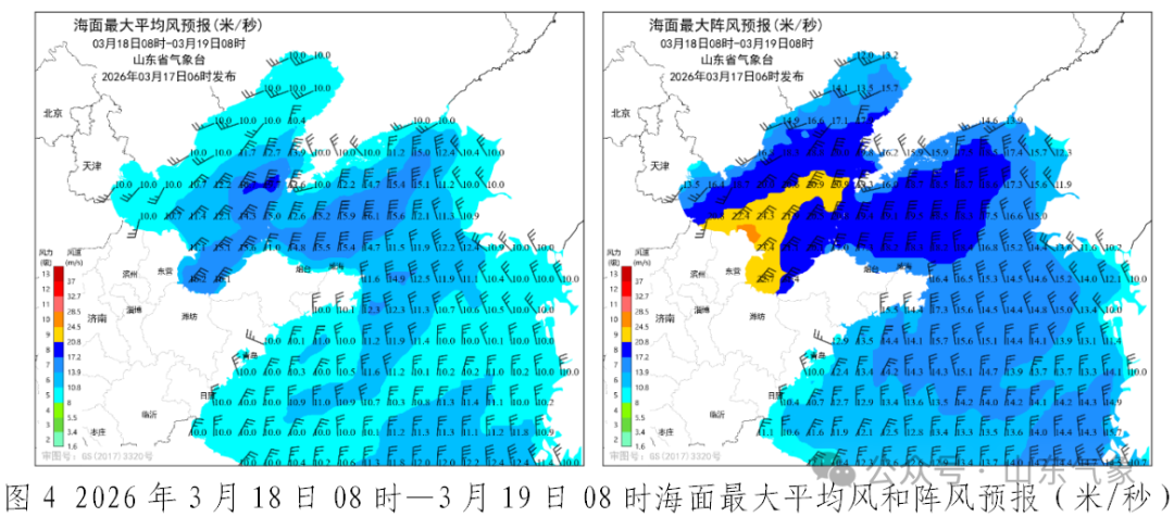 17日下午到18日白天,鲁南和鲁中地区天气阴有小雨转多云,其他地区天气阴局部有小雨转多云;17日夜间,鲁中和鲁南的部分地区有雾或轻雾。鲁西北、鲁中、半岛地区和内陆湖面南风3~4级转北风5~6级阵风7~9级,其他地区南风3级转北风4~5级阵风6~7级。最低气温:聊城、德州、泰安、菏泽、济宁和枣庄5℃左右,半岛内陆地区0℃左右,其他地区3℃左右。18日最高气温:烟台、威海和鲁中山区8℃左右,鲁南地区12℃左右,其他地区10℃左右。