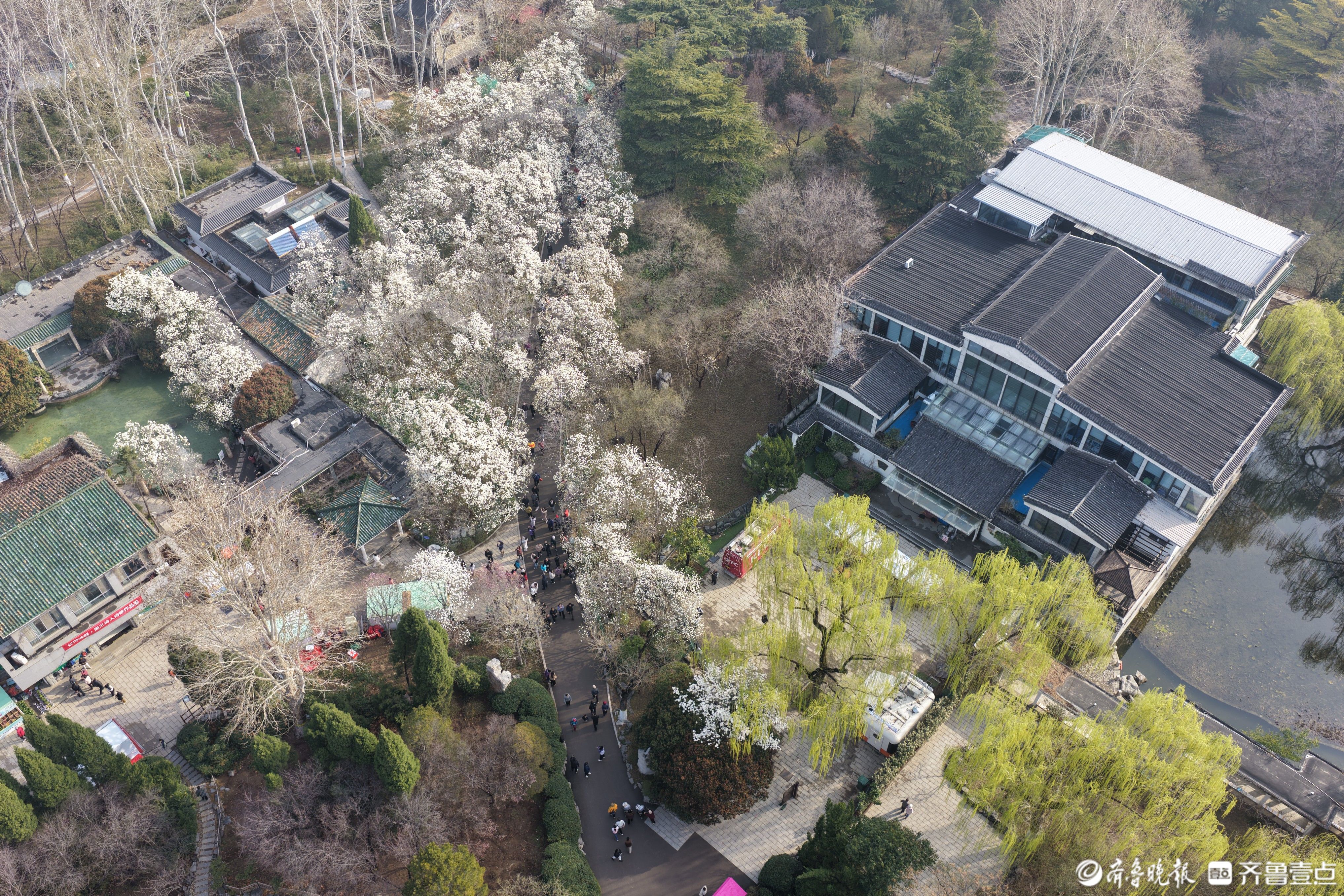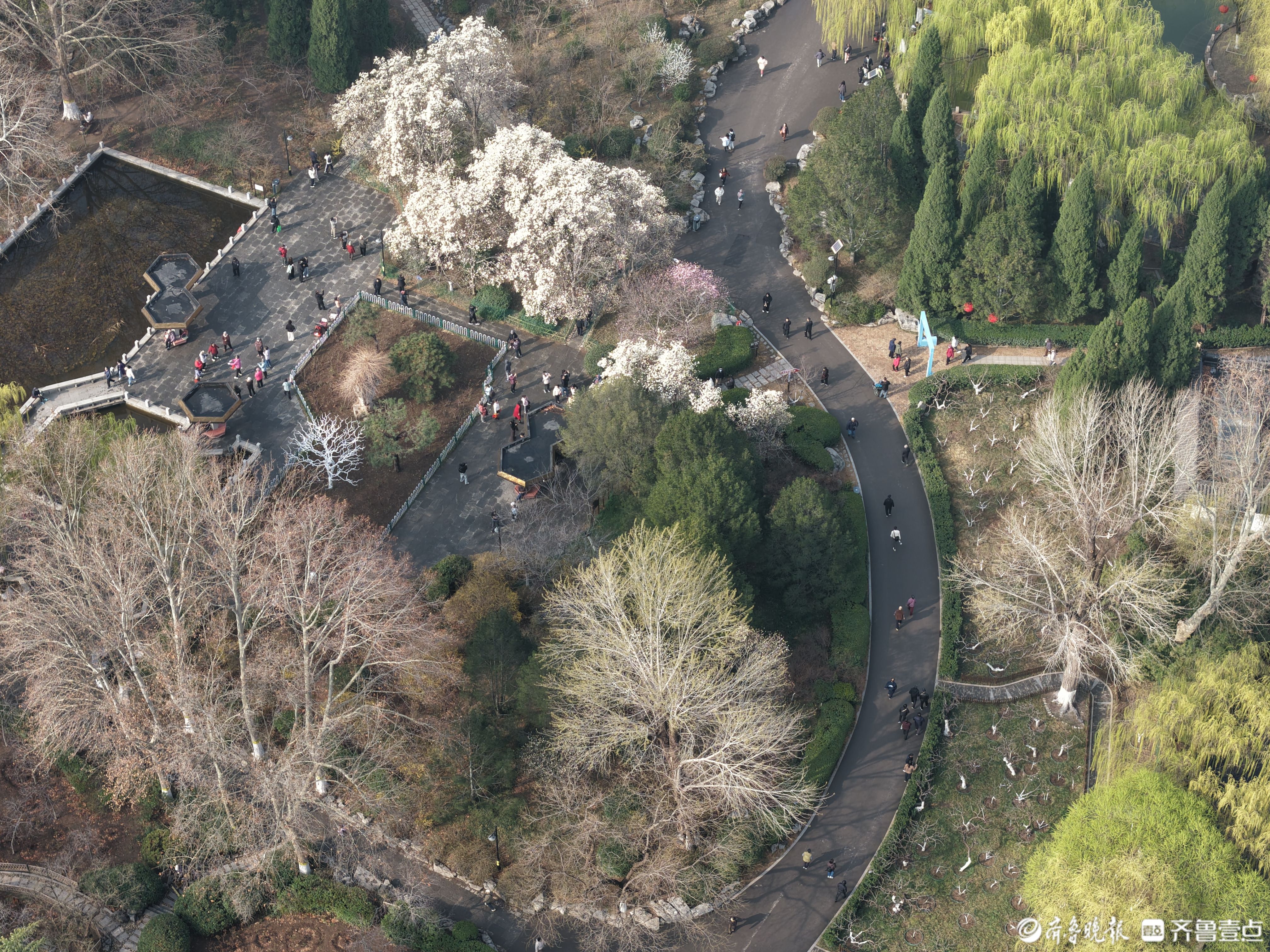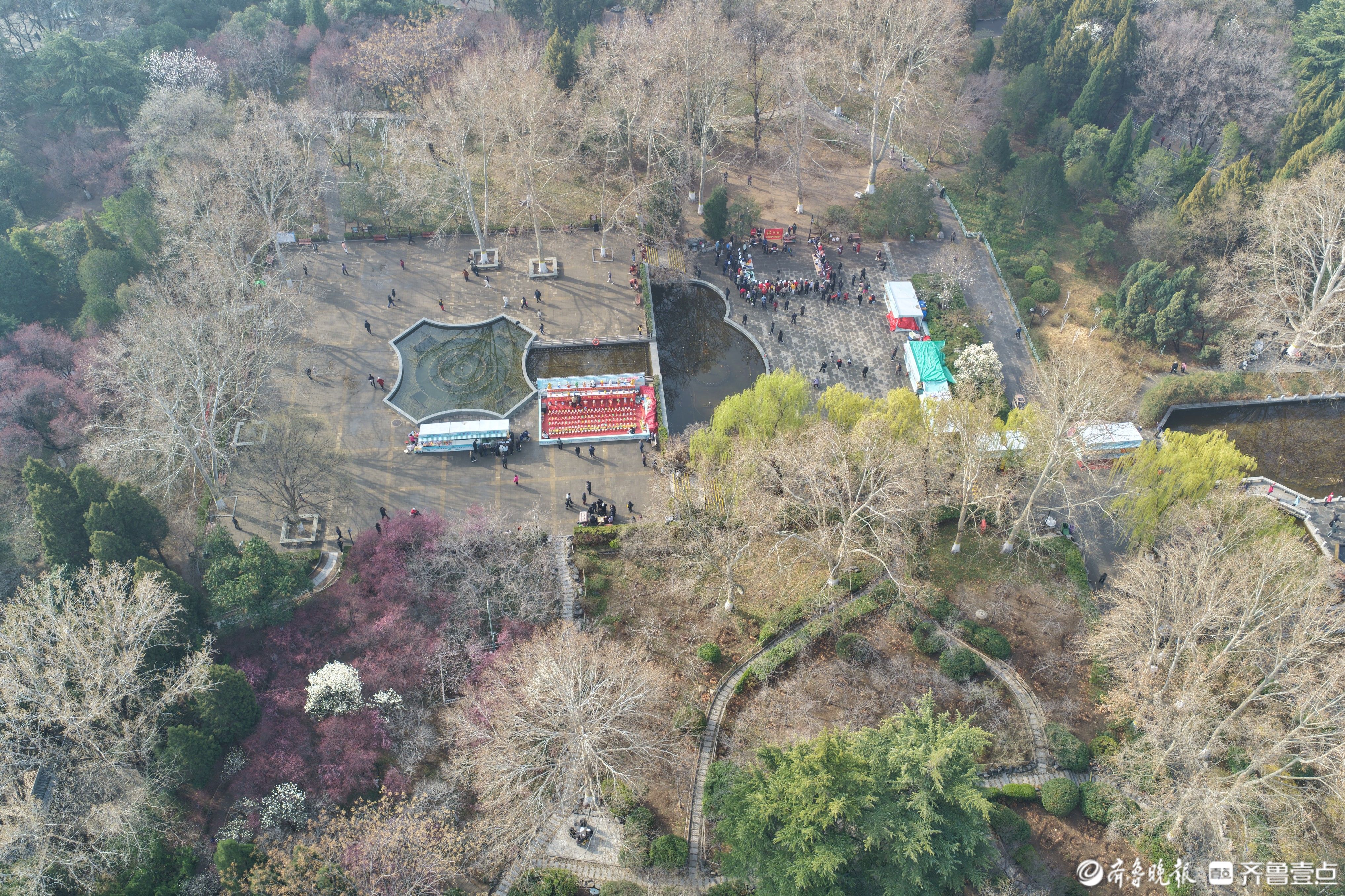 鸟瞰济南百花公园,春色渐浓