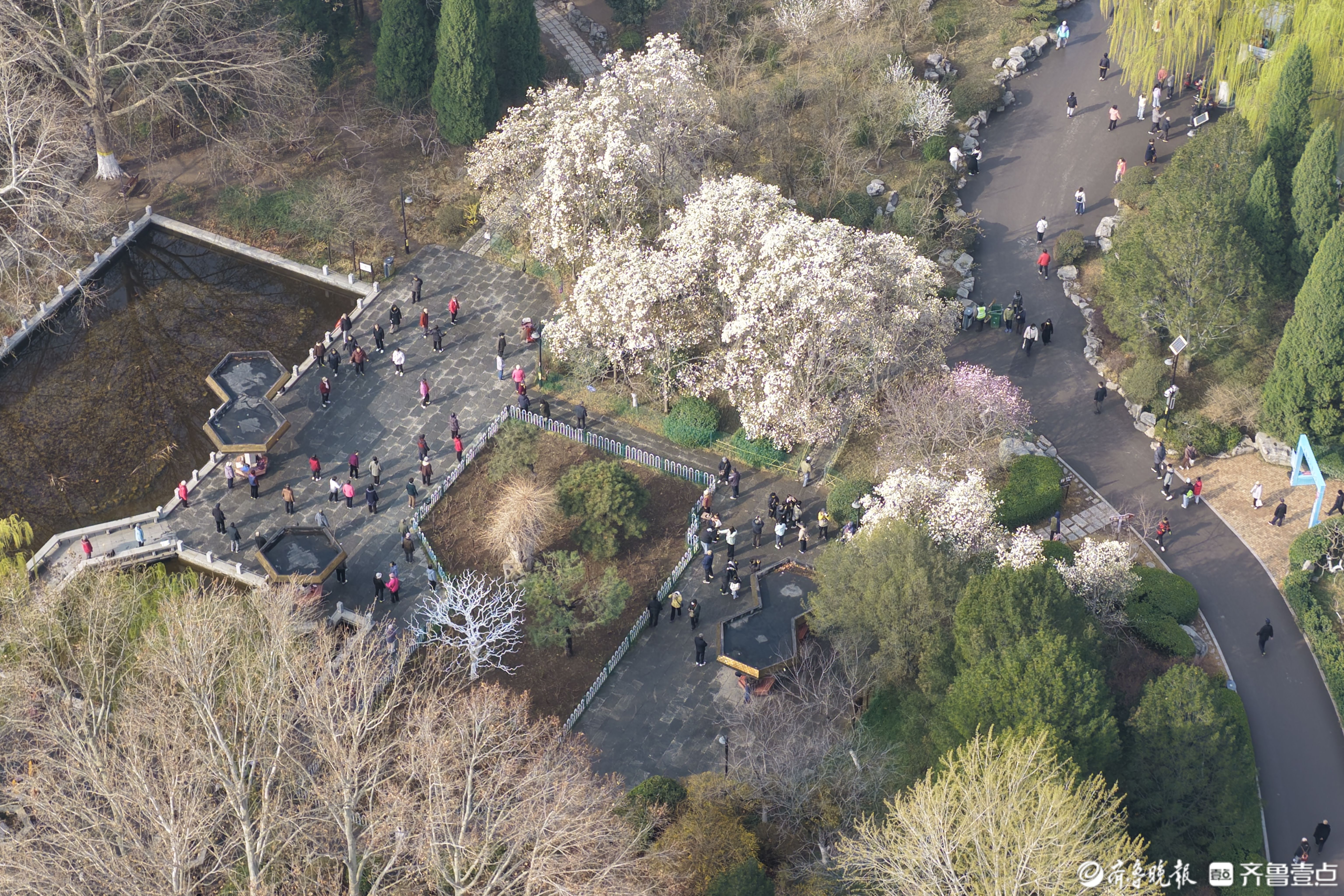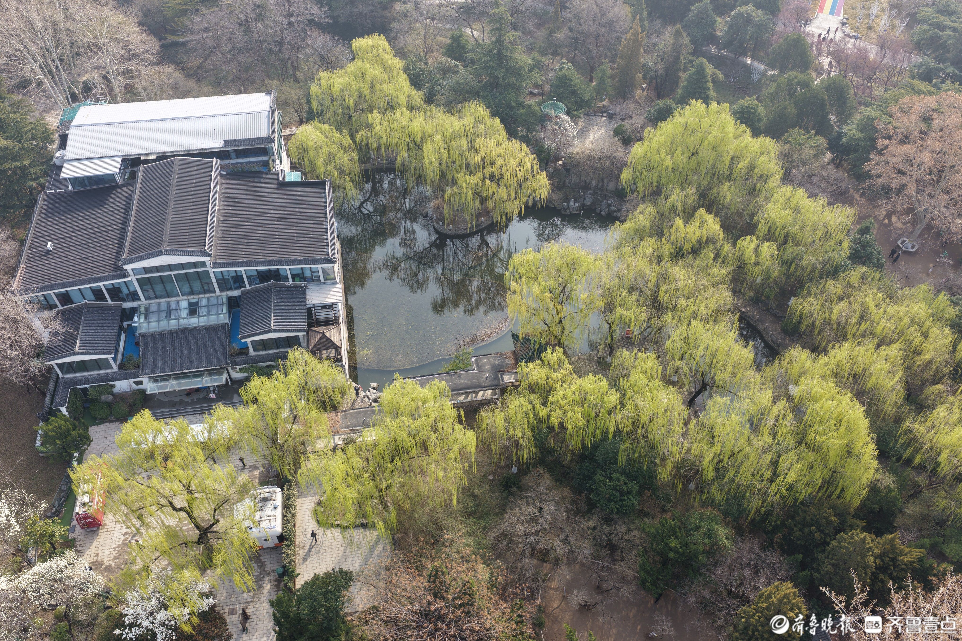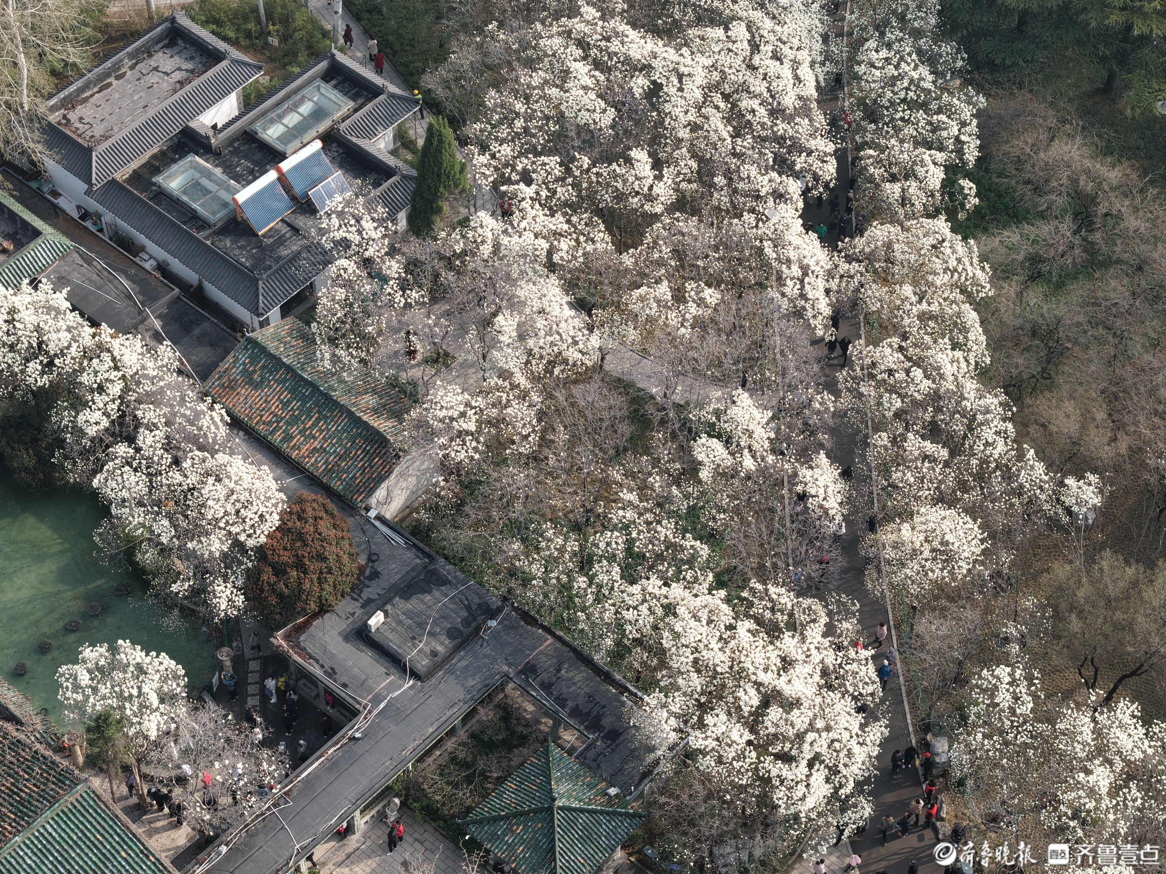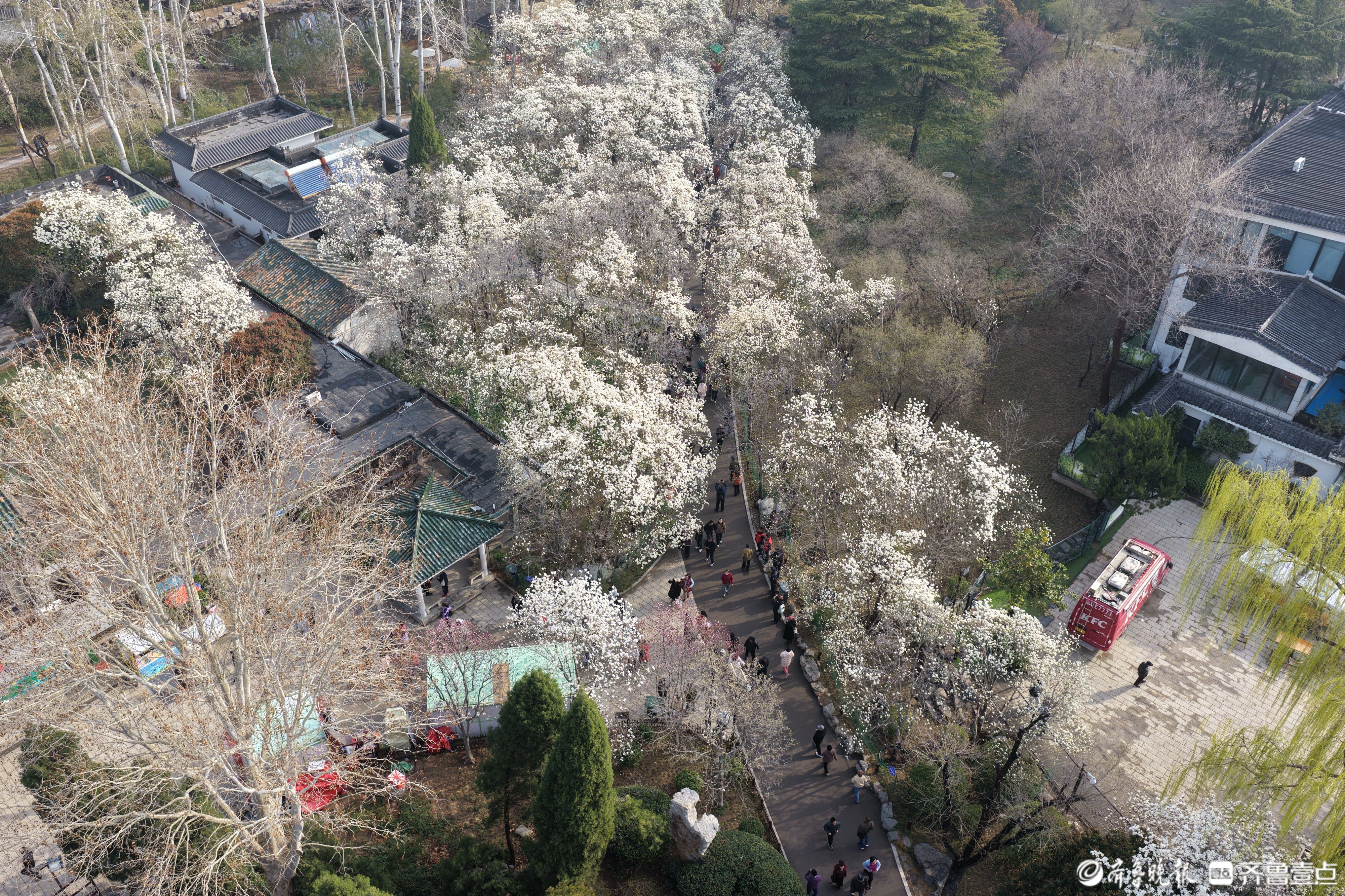 鸟瞰济南百花公园,春色渐浓