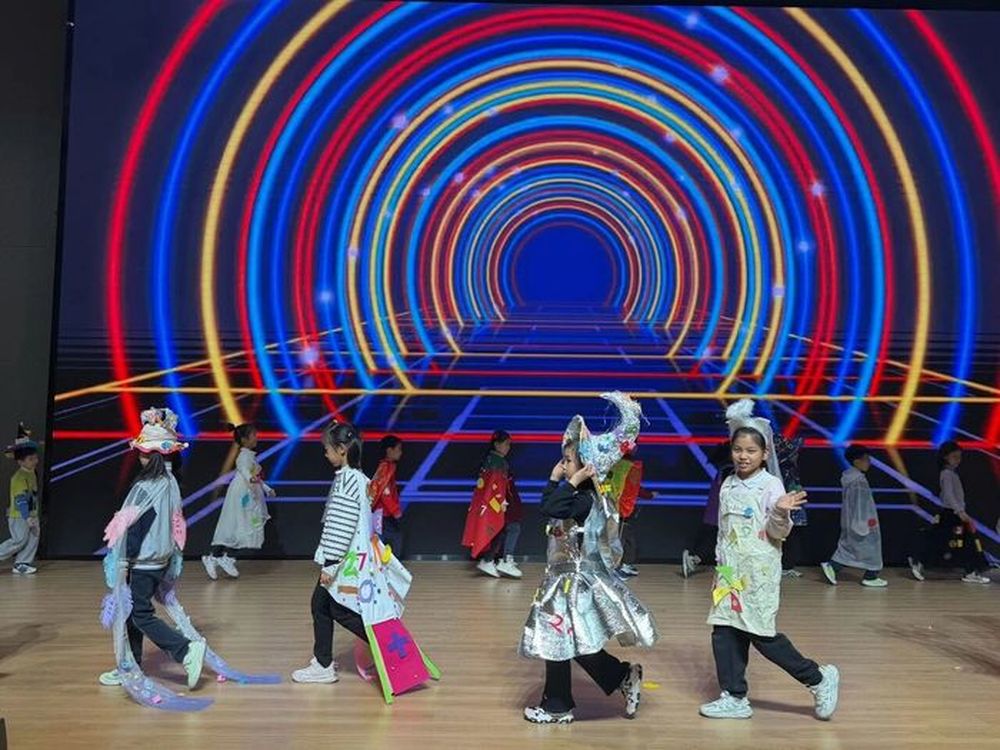 高新区瀚阳学校的数学文化节则以戏剧演绎为特色,一、二年级小朋友带来的数学戏剧,带大家穿越时空探秘货币发展史。萌娃们化身小小讲解员,从原始物物交换、贝币、金属货币,到秦始皇统一钱币、世界最早纸币交子,再到如今的扫码支付,一步步还原钱币演变历程,将枯燥的金融知识变得鲜活易懂。随后的一年级图形创意时装秀上,孩子们用朴素材料,以圆形、方形、三角形为灵感设计时装,展现纯粹的想象力与创造力。