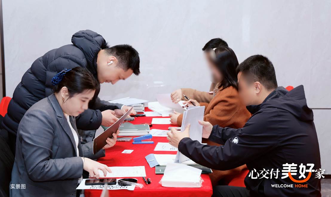 交付现场工作人员以饱满的热情引导业主有序前行,全流程“一站式”服务让繁琐手续变得省心便捷,各个环节紧密衔接,真正让业主体验到了“省心、舒心、安心”的归家之旅。