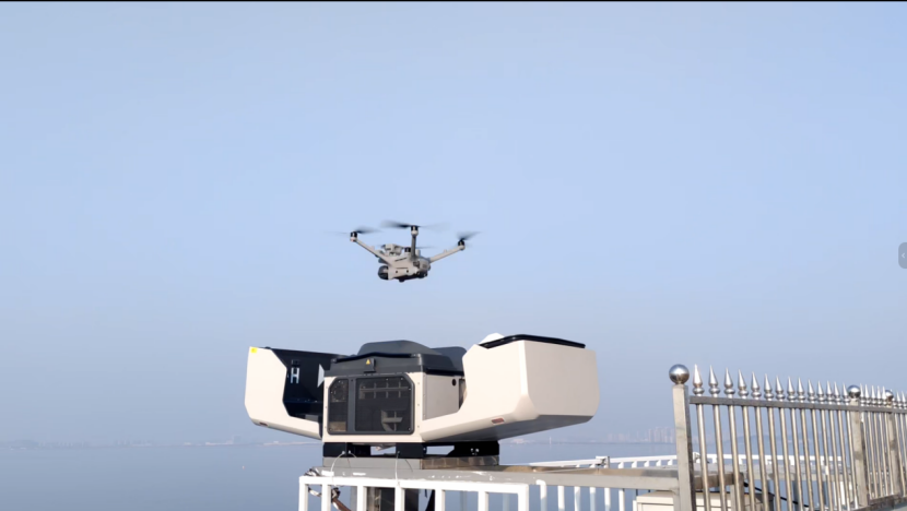 智能巡检无人机起飞画面