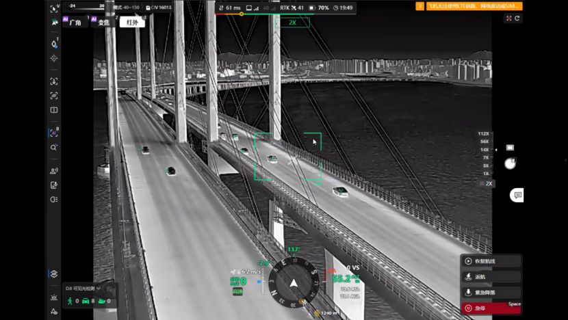 近日,在山东高速胶州湾大桥红岛航道桥侧,无人机来回穿梭,配合高清视频巡检系统对大桥路面进行全方位巡查。目前,山东高速青岛发展公司利用智能低空巡检平台,有效替代常规人工巡检,大大提高巡检效率,有力护航公众平安畅通出行。