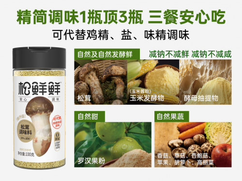 松鲜鲜创始人易子涵表示:“我们以盐为唯一含钠成分,避免了其他增鲜剂带来的额外钠摄入。”相比传统盐和味精的组合,使用松鲜鲜产品,消费者可在享受同等鲜味和咸度的同时,减少约一半的钠摄入。