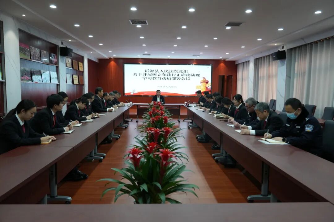 近日,沂源县人民法院召开党组扩大会,开展全院树立和践行正确政绩观学习教育动员部署工作。县法院党组成员、政治部主任徐新波主持会议,党组书记、院长徐嘎出席会议并作部署讲话,在家领导班子、各部门团队负责人参加会议。
