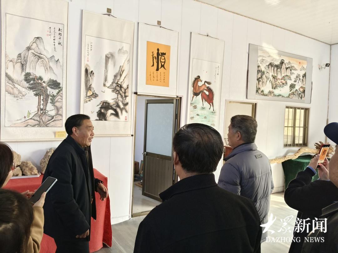 采风团进村感受高唐书画文化和锦鲤产业独特魅力。