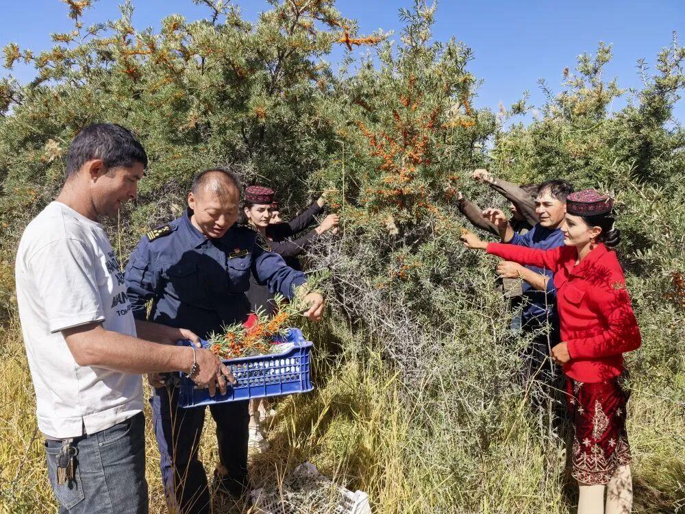 2025年9月,王虎带着托格伦夏村村民采摘野生沙棘。
