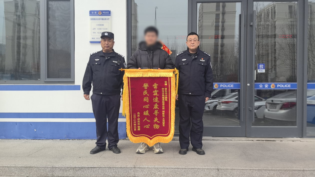 当纪先生看到黄金首饰完好无损返还时,言语间满是感激,连连向参与搜寻的民警鞠躬致谢,哽咽着说道:“太感谢咱们民警同志了,这么贵重的东西能找回来,我真的不敢想,你们真是老百姓的贴心人!”3月16日上午,心怀感激的纪先生特意定制了一面印有“雷霆速度寻失物,警民同心暖人心”的锦旗,亲自送到湘潭路派出所,对民警高效履职、暖心为民表达深深谢意。