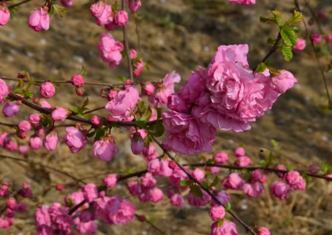 西海公园的春天,从第一抹明黄开始。迎春花沿着园路铺展,垂落成金色的花瀑。榆叶梅紧随其后,粉红色花朵密密匝匝缀满枝头,远望如一片灿烂的云霞。黄的明艳,粉的热烈,两种颜色在春风里交织,把整个西海染成春天最明媚的模样。