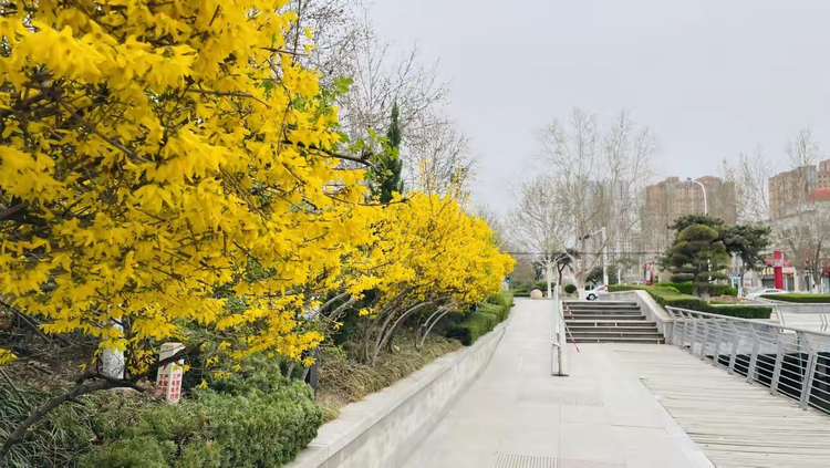 连翘垂下金灿灿的花枝,给莲河镶上一道阳光的边。紫荆不甘示弱,密密麻麻的紫红色小花爬满枝条,满树热烈的紫。樱花如云似霞,粉白花瓣层层叠叠,风起时纷纷扬扬飘落,随波而去。黄的灿烂,紫的热烈,粉的温柔——莲河两岸的春天,是一场色彩的盛宴。