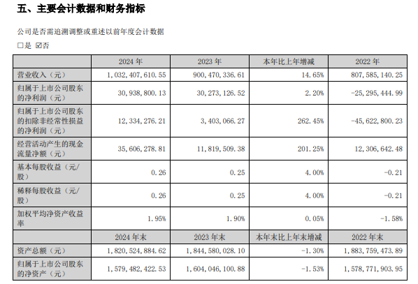 2023年,公司实现扭亏,净利润为3027.31万元,但扣非净利润仅340.31万元,盈利能力依然羸弱。2024年,公司营收首次突破10亿元大关,达10.32亿元,净利润为3093.88万元,扣非净利润为1233.43万元。表面上看,公司已走出亏损阴影。