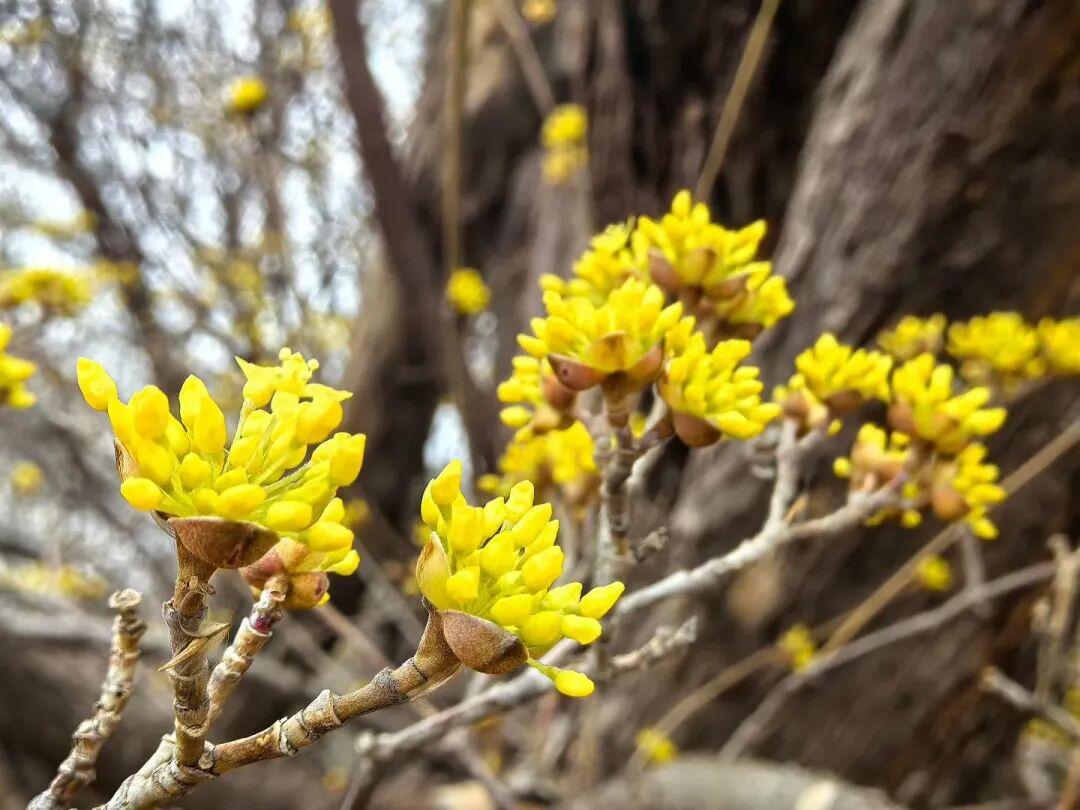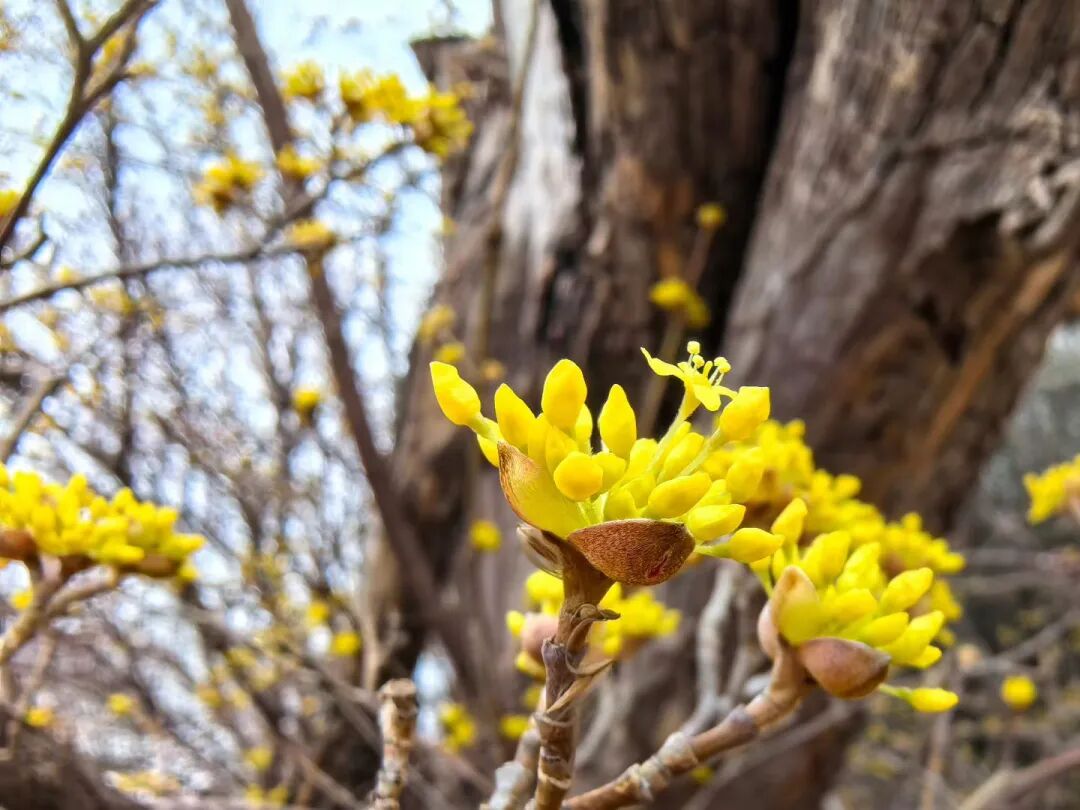 连日来,在莒县丽正园风景区内,一株罕见的茱萸恰逢花期,金黄花蕊缀满虬枝,在春日暖阳中吐露芳华,为整个园子增添了一抹兼具诗意与生机的亮色。
