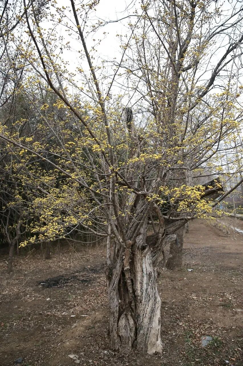 茱萸在日照数量极少,丽正园的这株茱萸树干周径约一米,通高两米,虬枝舒展、苍劲古朴,尽显岁月雕琢的韵味。茱萸素有“先花后叶”的特性,每年三四月间,细碎的金黄色小花密密簇生枝头,如碎金覆树,明媚动人;入秋之后,枝头又会挂满玲珑剔透的红果,四季景致各有风情。