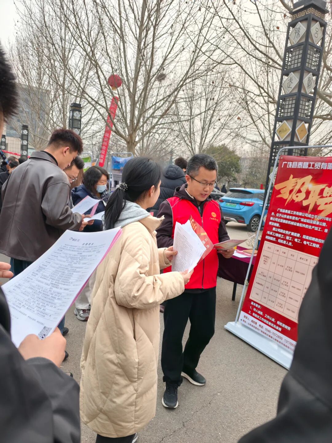 在春季就业招聘会现场,广饶县总工会设立工会服务点,主动与用工需求企业负责人和求职意向职工面对面交流。