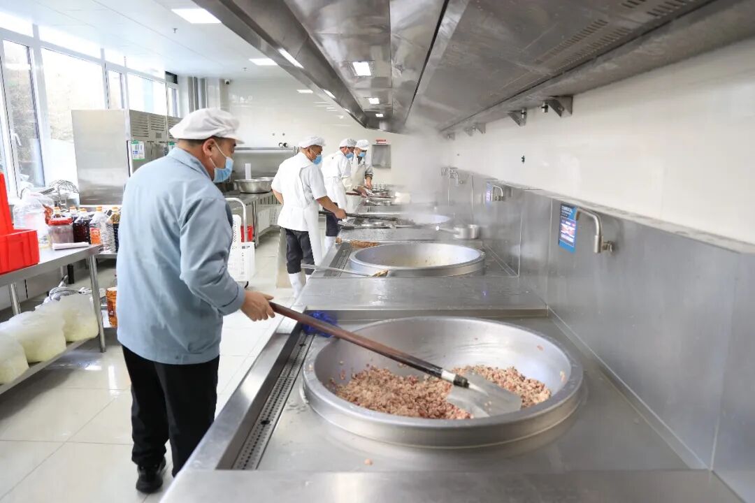 硬件配置上,食堂严格对标最高标准,配备了专业的厨具、恒温保温设备和专用清洗消毒设施,并严格遵循生熟分离、荤素分离的操作规范,从源头上杜绝交叉污染,为食品安全筑牢了坚实的硬件防线。如今,防滑地砖、不锈钢操作台、全自动消毒柜已成为标配。