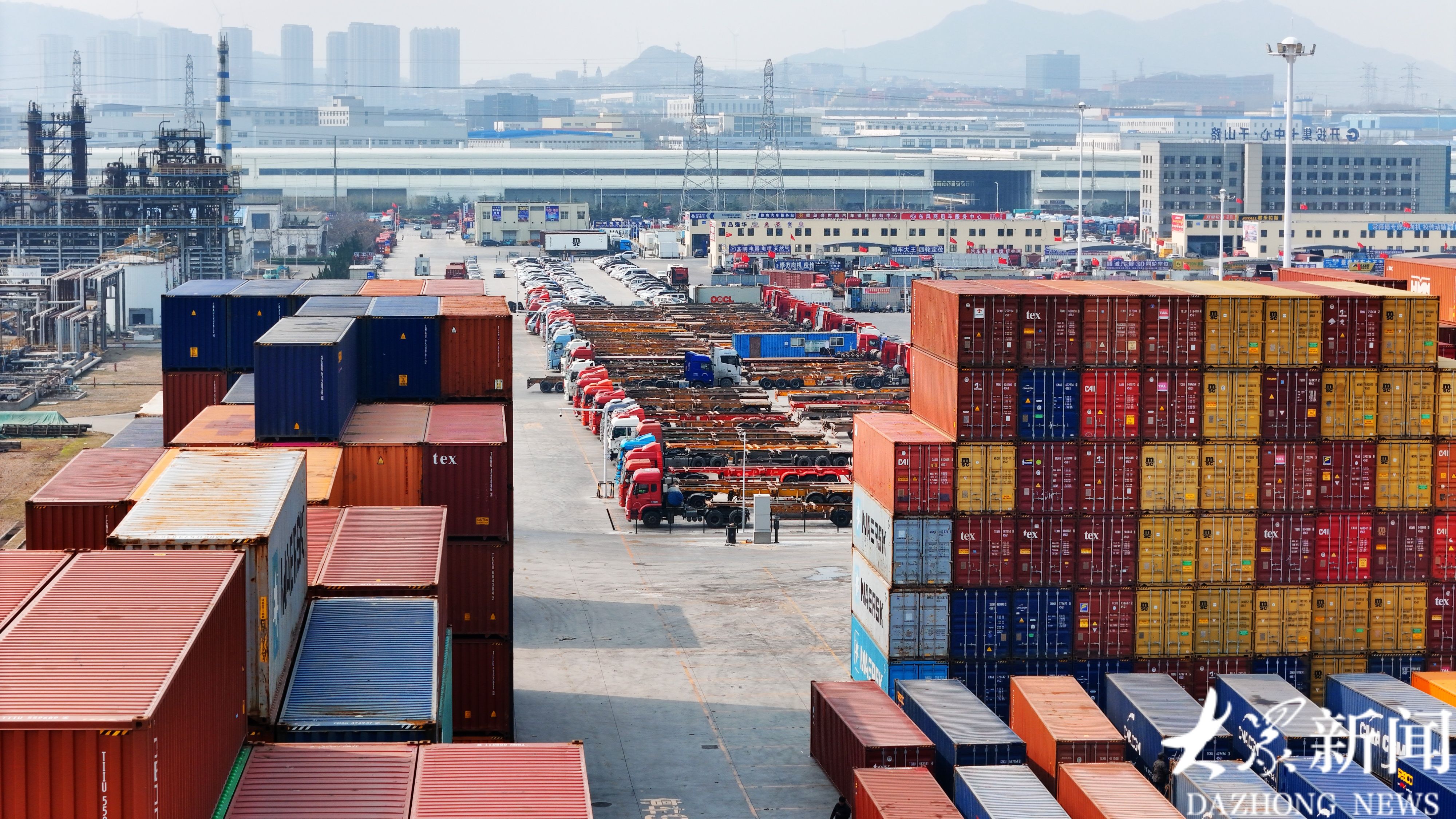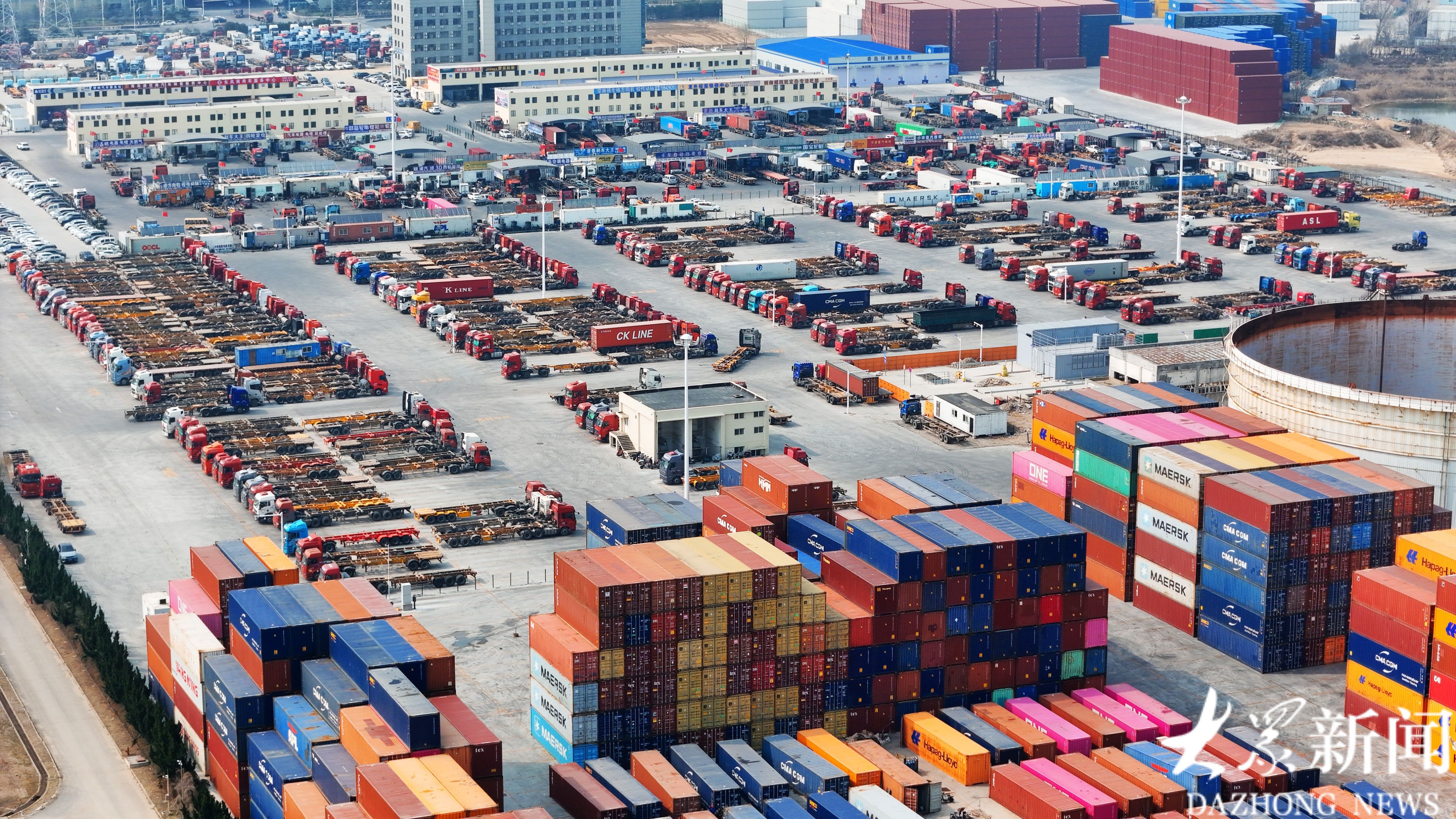 3月12日,航拍视角下的青岛西海岸新区开投集卡中心。