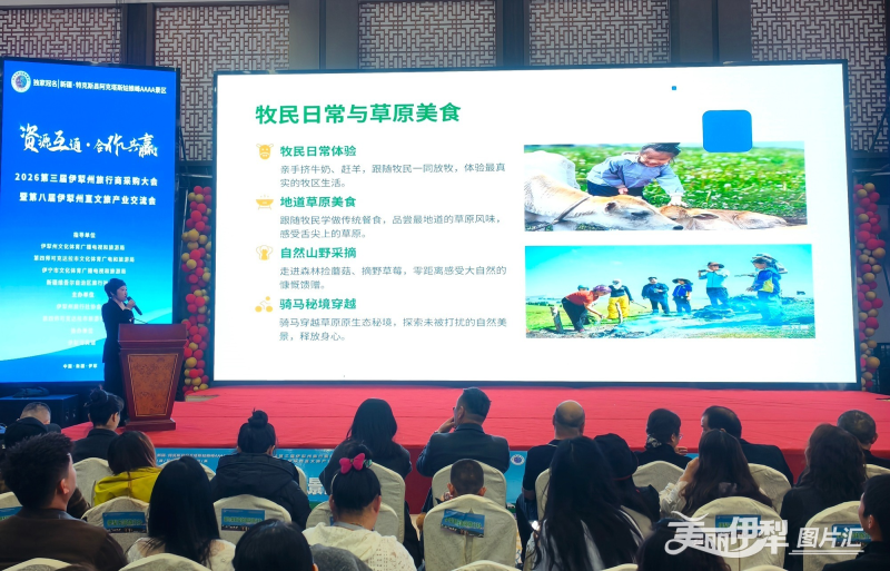 此次会议由伊犁州旅行社协会、兵团第四师可克达拉市旅游行业协会联合主办,伊犁州及第四师可克达拉市、伊宁市文旅部门全程指导。作为伊犁文旅行业的年度重要活动,本届会议延续了前两届办会理念,聚焦“全季旅游”发展目标,全面推介2026年伊犁特色旅游资源与创新玩法,进一步打通文旅产业链各环节衔接,推动资源优势转化为发展优势。