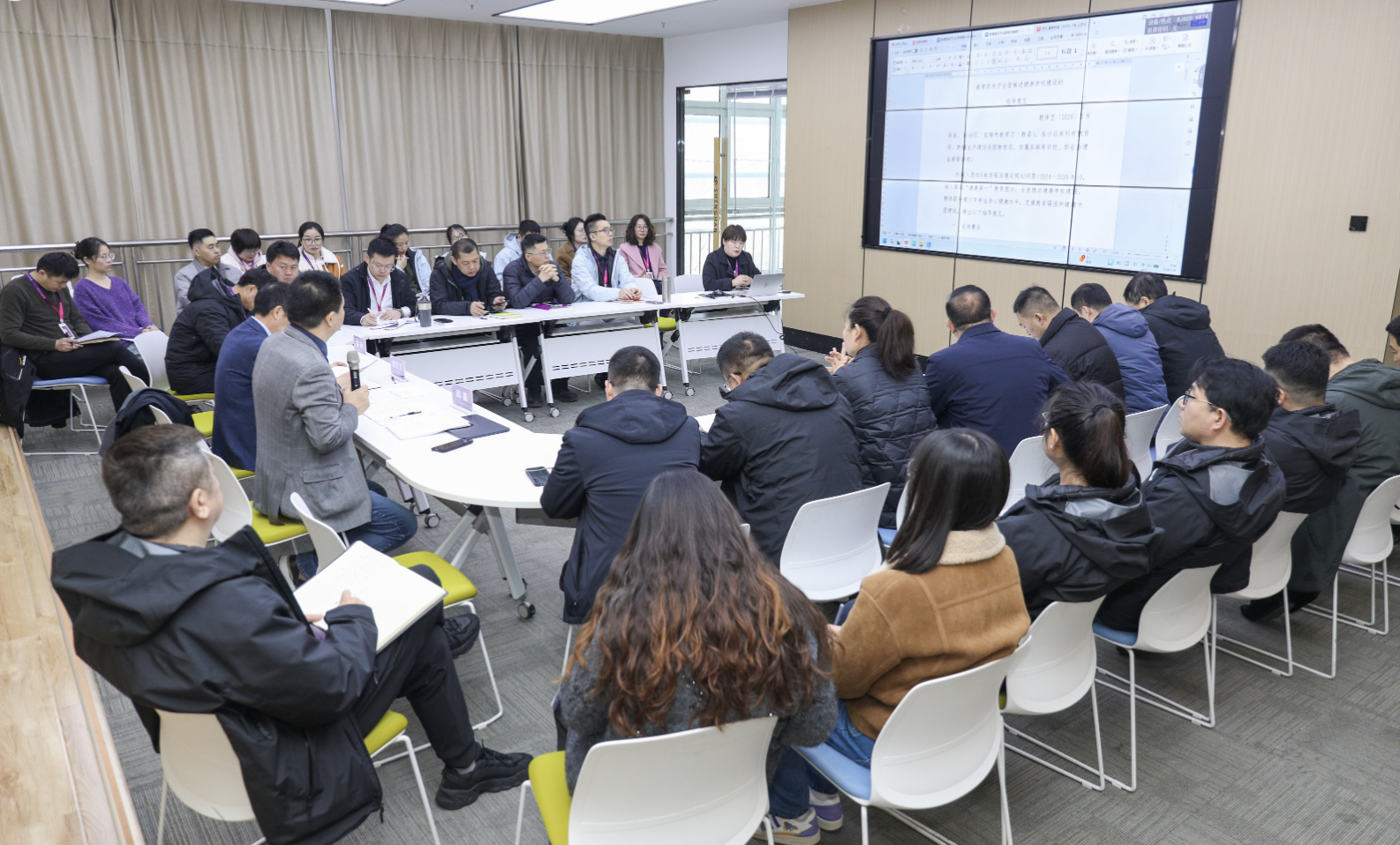 会上,学生工作处副处长胡肖霞围绕《教育部关于全面推进健康学校建设的指导意见》,从健康环境营造、健康课程开设、健康服务保障等方面进行解读;文化体育与康养学院副院长王学屏则结合《山东省教育厅关于转发〈教育部办公厅关于实施大学生体质提升专项行动的通知〉的通知》,梳理了大学生体质提升的具体任务与考核要求,为后续工作开展明确了政策依据。