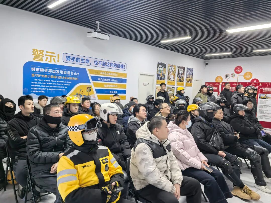 建昌街社区党委书记赵雅琪介绍了一组触目惊心的数据:2024年烟台市骑手事故致4人死亡、102人伤残,每月事故骑手约160人。为了尽可能避免交通事故,让每位骑手都能平安上路,各个外卖平台都在努力组织安全培训。但培训却苦于没有合适室内场地,只能在室外“露天开课”,风一吹声音就散,后排骑手根本听不清,培训形同“走过场”。