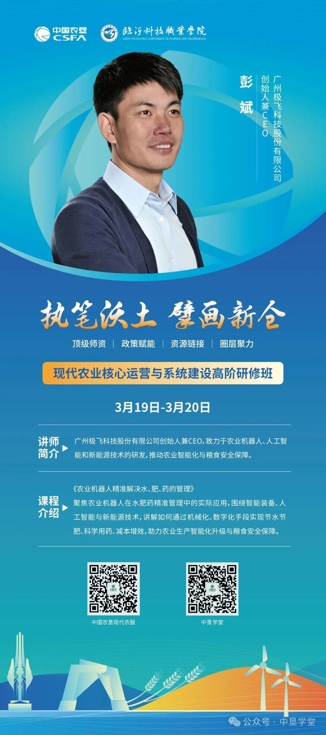 3月19日至20日,由中国农垦集团主办、临沂科技职业学院承办的现代农业核心运营与系统建设高阶研修班,将正式开班。今日带你解锁数智科技与技术赋能系列课程,该课程聚焦智能装备、北斗融合、新媒体赋能三大核心,手把手教你用硬核科技破解农业生产 “效率低、成本高” 核心痛点,让科技成为农业经营核心生产力!