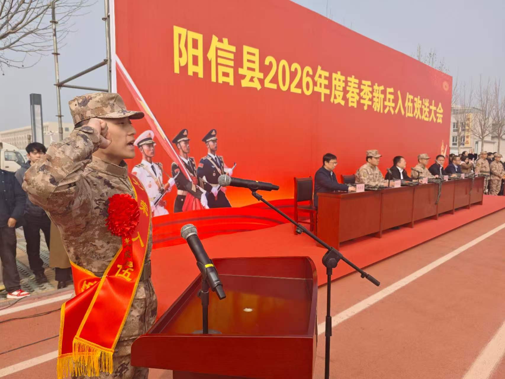 春潮砺兵心,壮志赴军营。3月17日,阳信县在县民兵训练基地举行2026年度春季新兵入伍欢送大会。